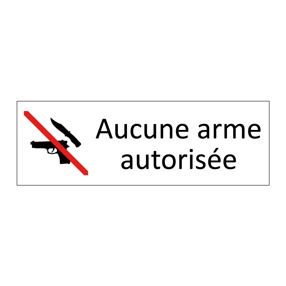 Panneau d'information avec le texte Aucune arme autorisée et une symbolique claire pour une meilleure visibilité.