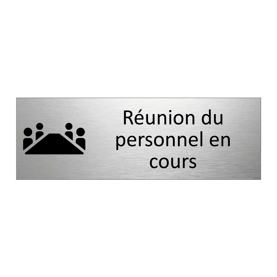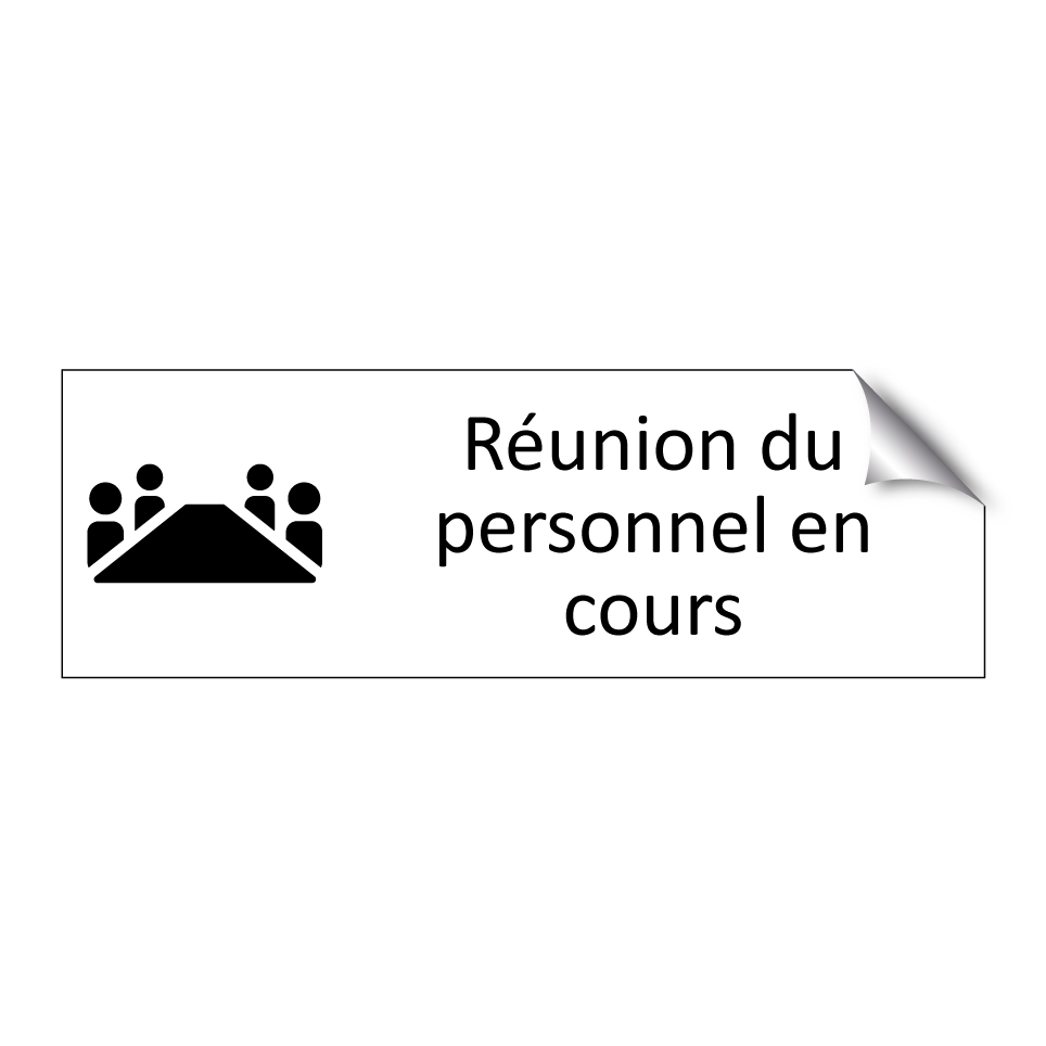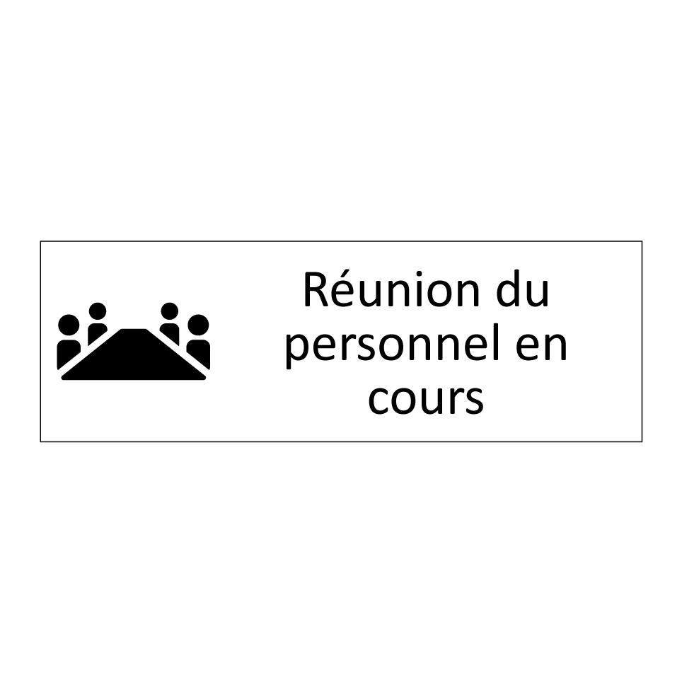 Panneau d'information avec le texte Réunion du personnel en cours et une symbolique claire pour une meilleure visibilité.