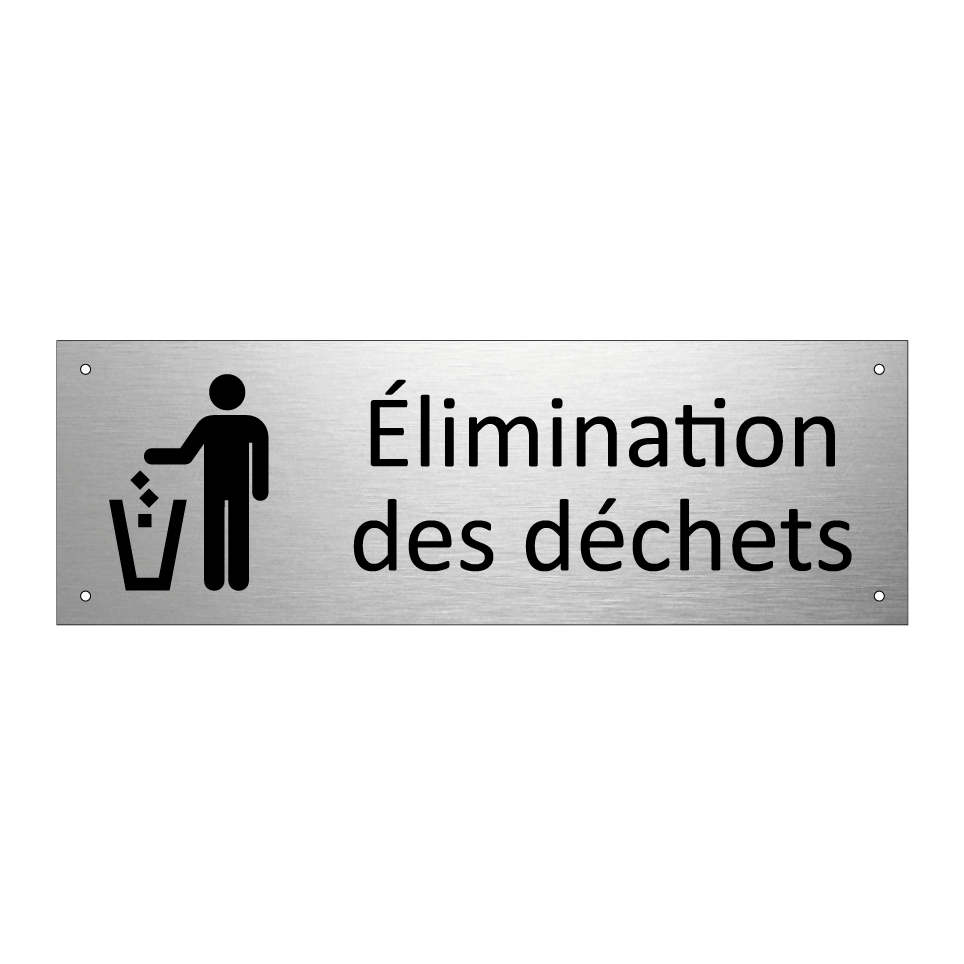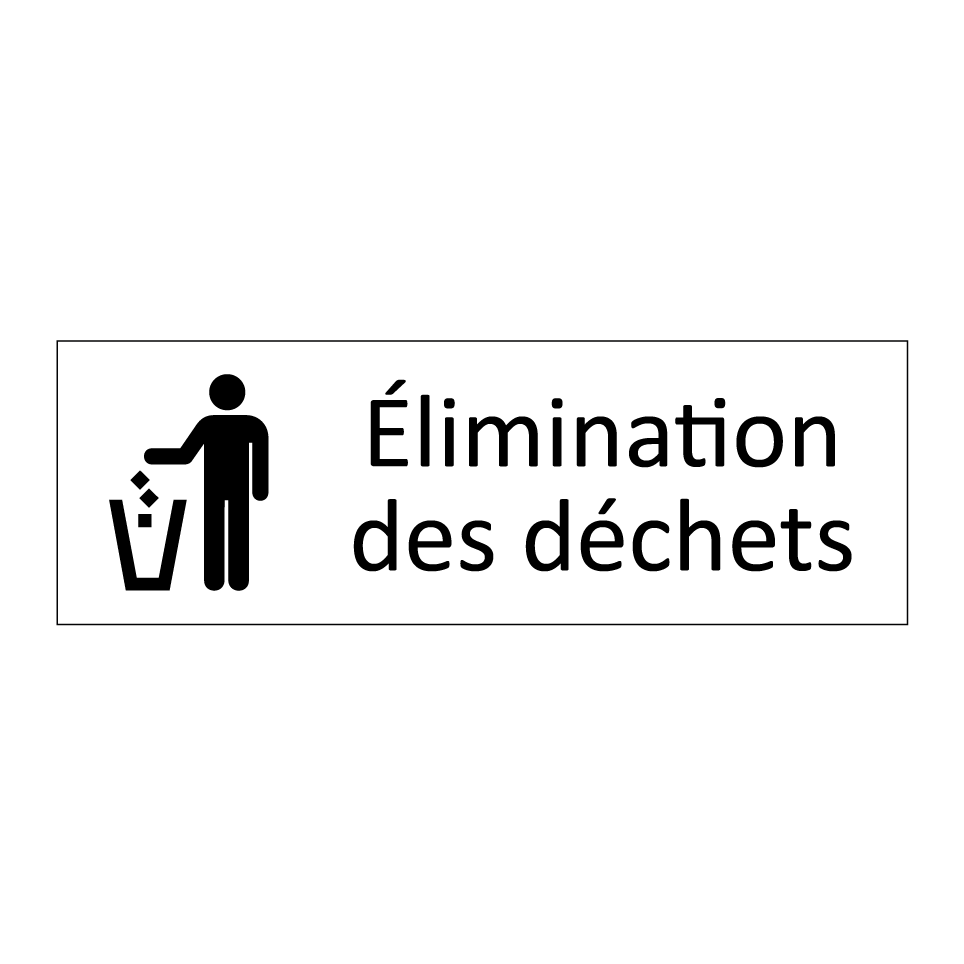 Panneau d'information avec le texte Élimination des déchets et une symbolique claire pour une meilleure visibilité.
