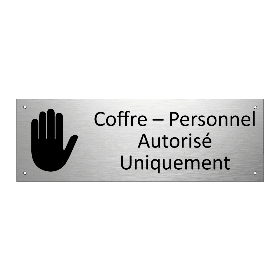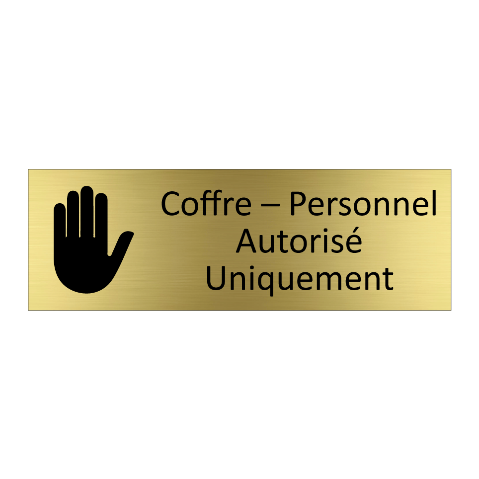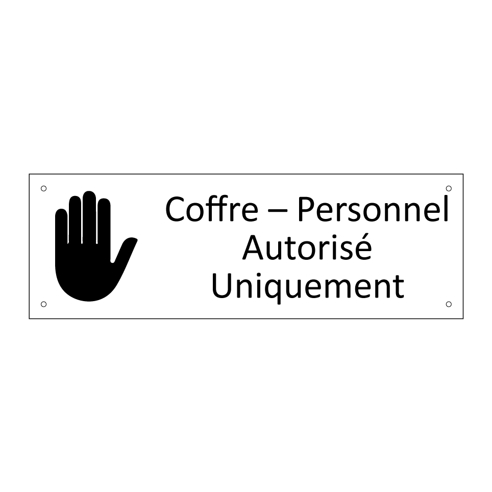 Panneau d'information avec le texte Coffre – Personnel Autorisé Uniquement et une symbolique claire pour une meilleure visibilité.