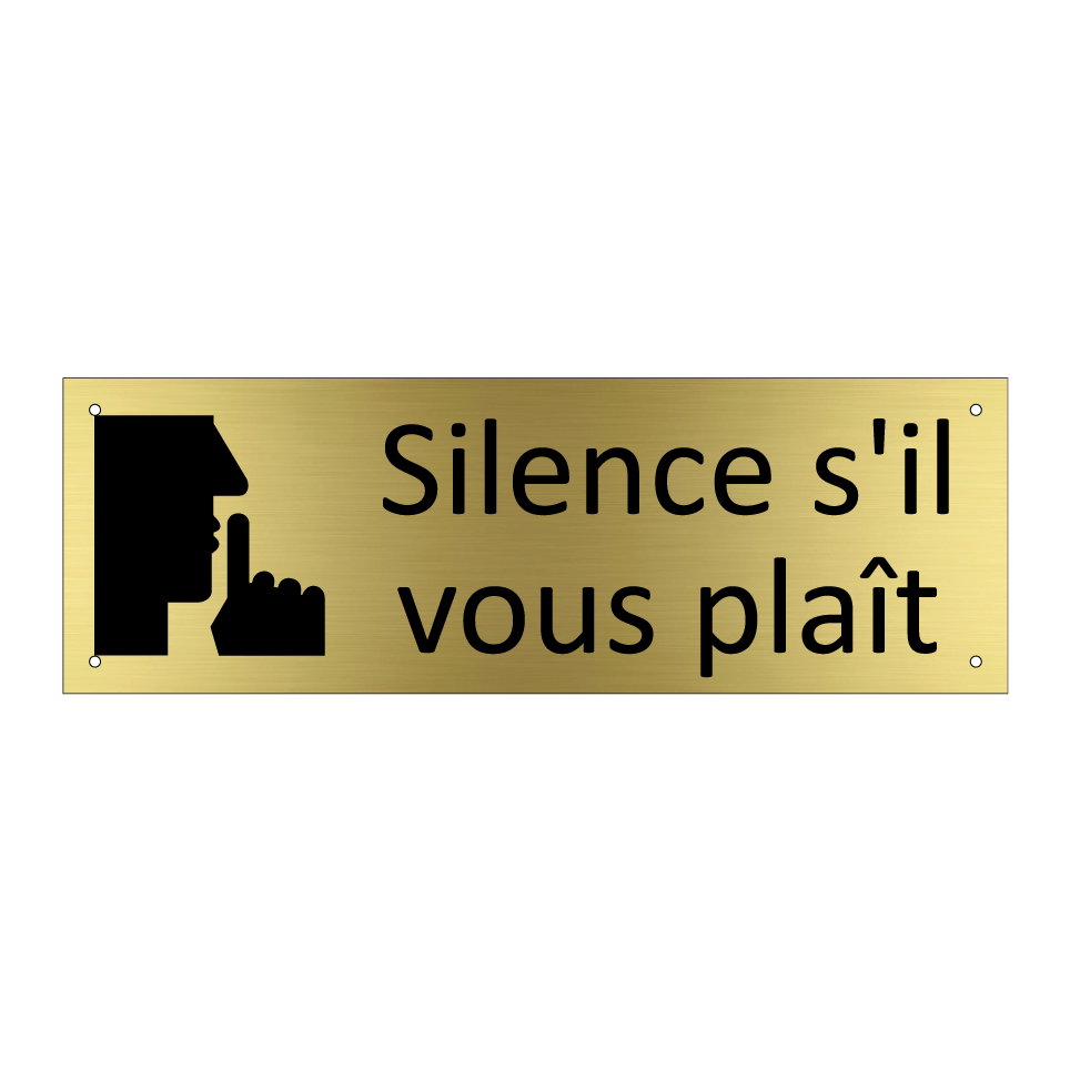 Panneau d'information avec le texte Silence s'il vous plaît et une symbolique claire pour une meilleure visibilité.