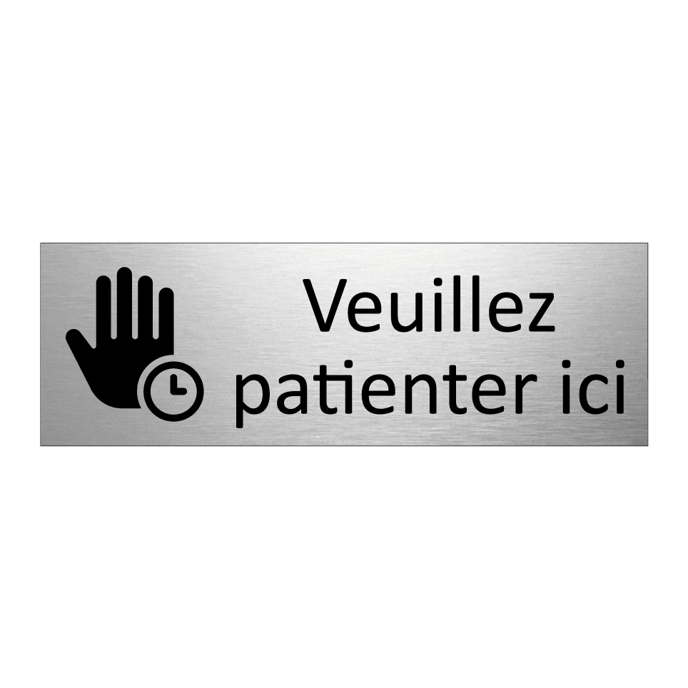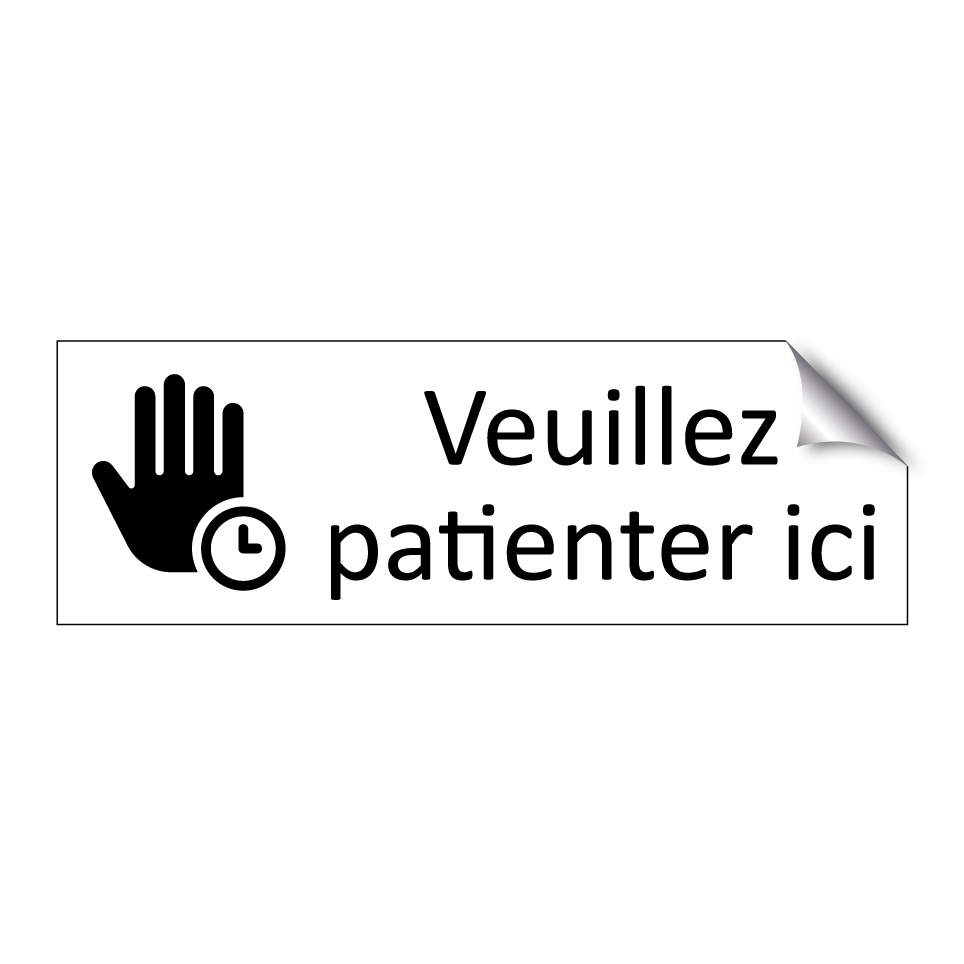 Panneau d'information avec le texte Veuillez patienter ici et une symbolique claire pour une meilleure visibilité.