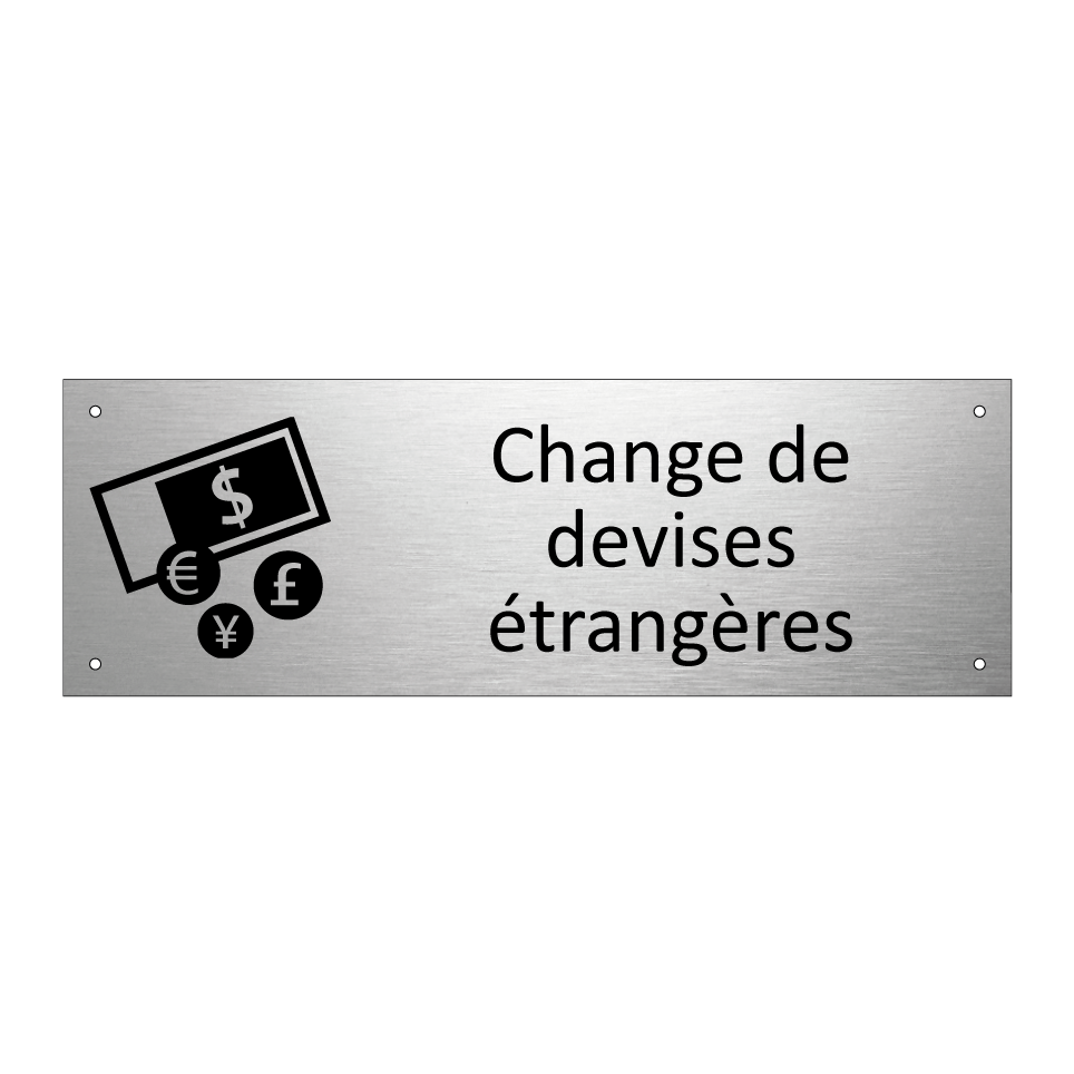 Panneau d'information avec le texte Change de devises étrangères et une symbolique claire pour une meilleure visibilité.