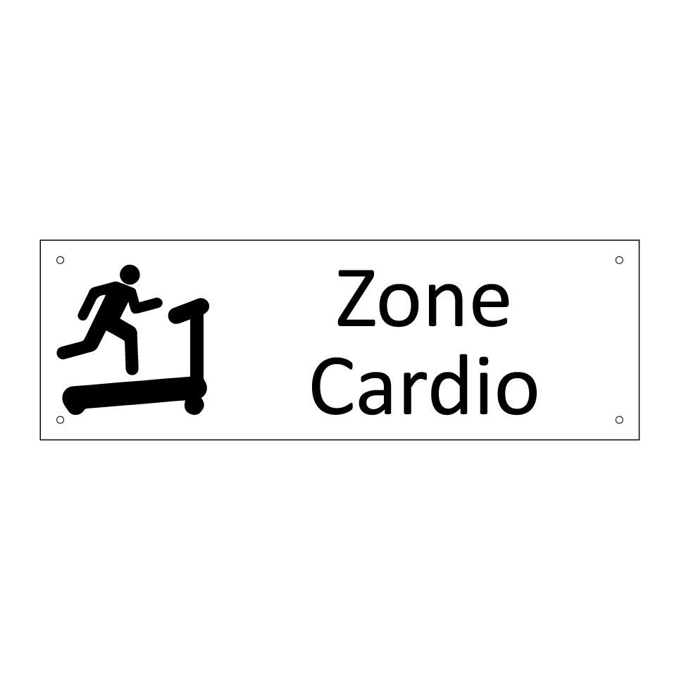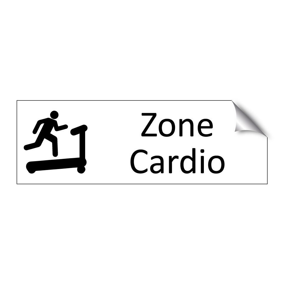 Panneau d'information avec le texte Zone Cardio et une symbolique claire pour une meilleure visibilité.
