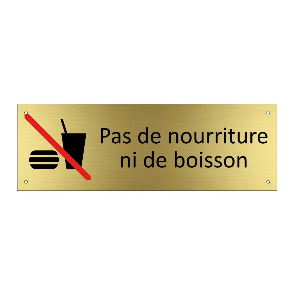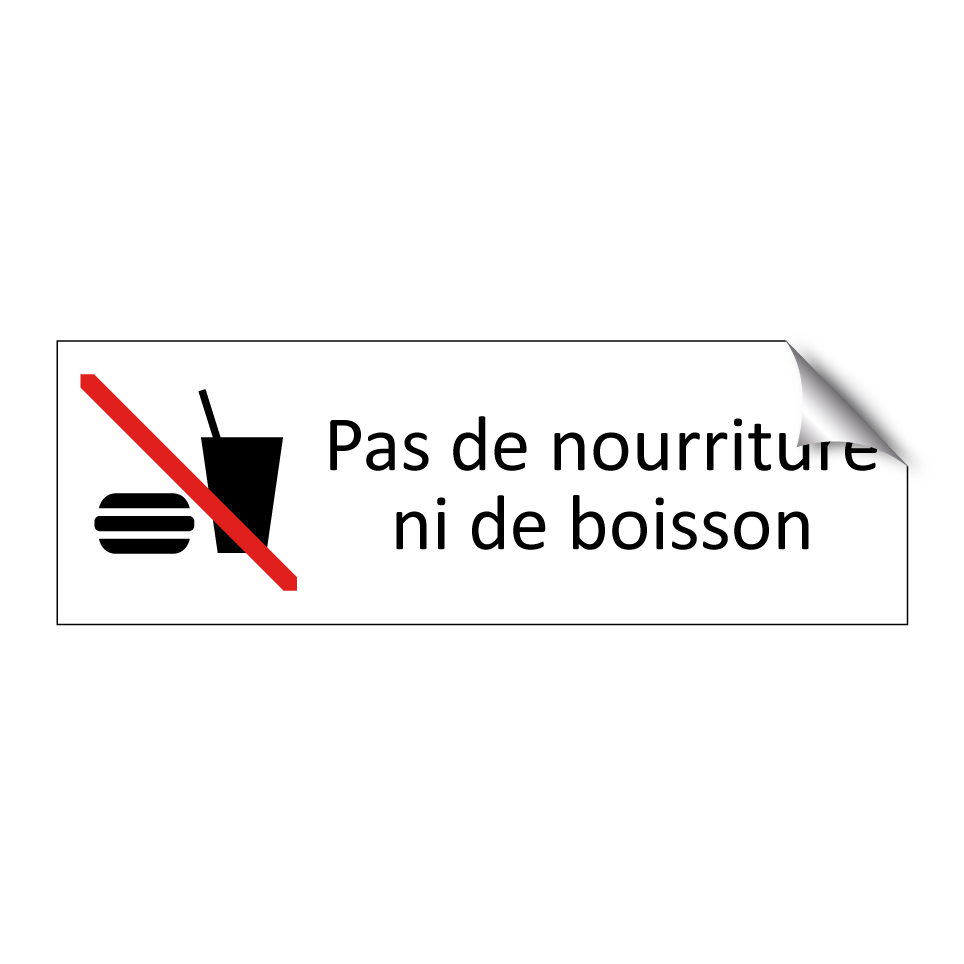 Panneau d'information avec le texte Pas de nourriture ni de boisson et une symbolique claire pour une meilleure visibilité.