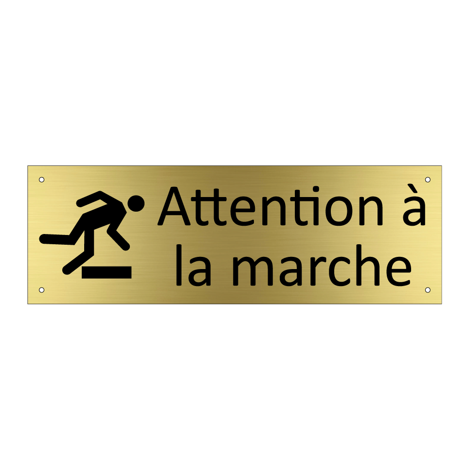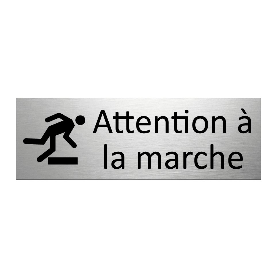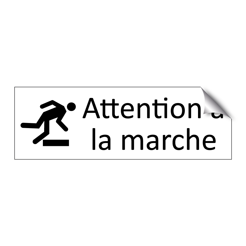 Panneau d'information avec le texte Attention à la marche et une symbolique claire pour une meilleure visibilité.