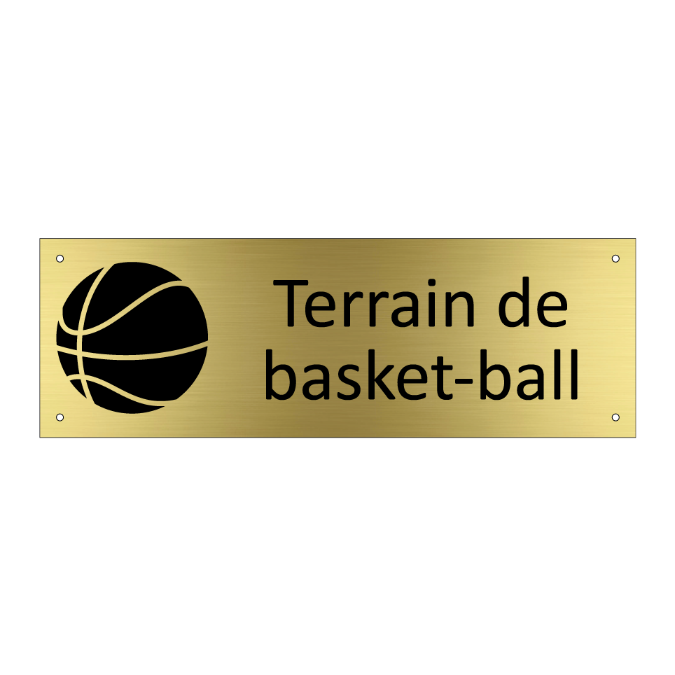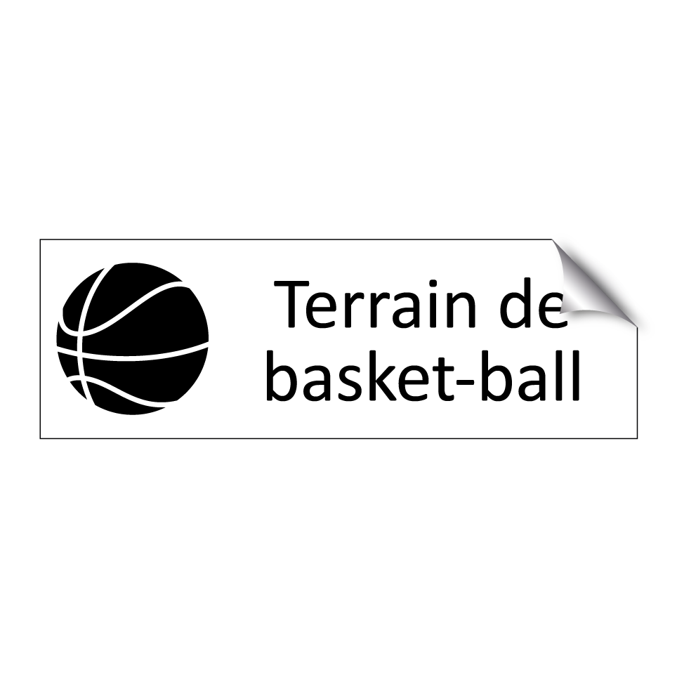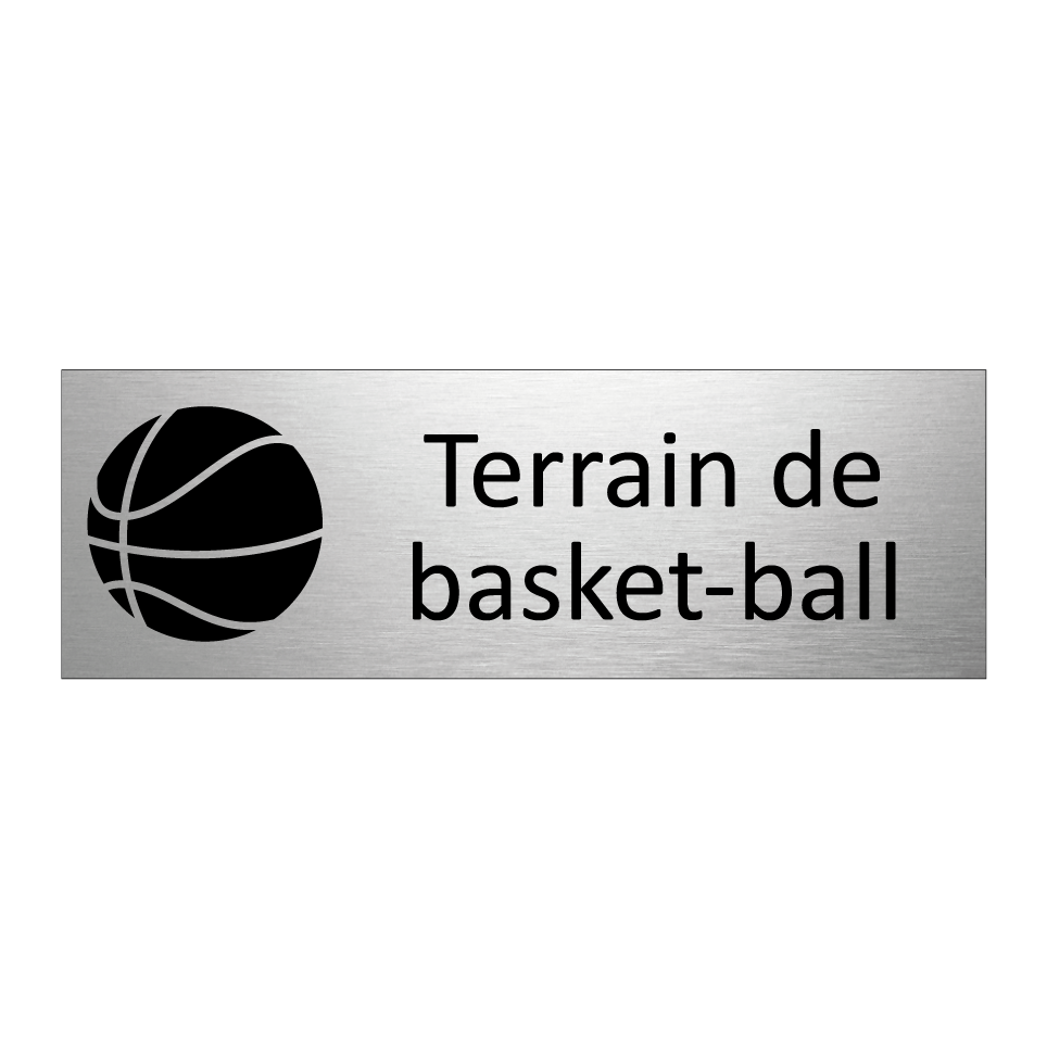 Panneau d'information avec le texte Terrain de basket-ball et une symbolique claire pour une meilleure visibilité.