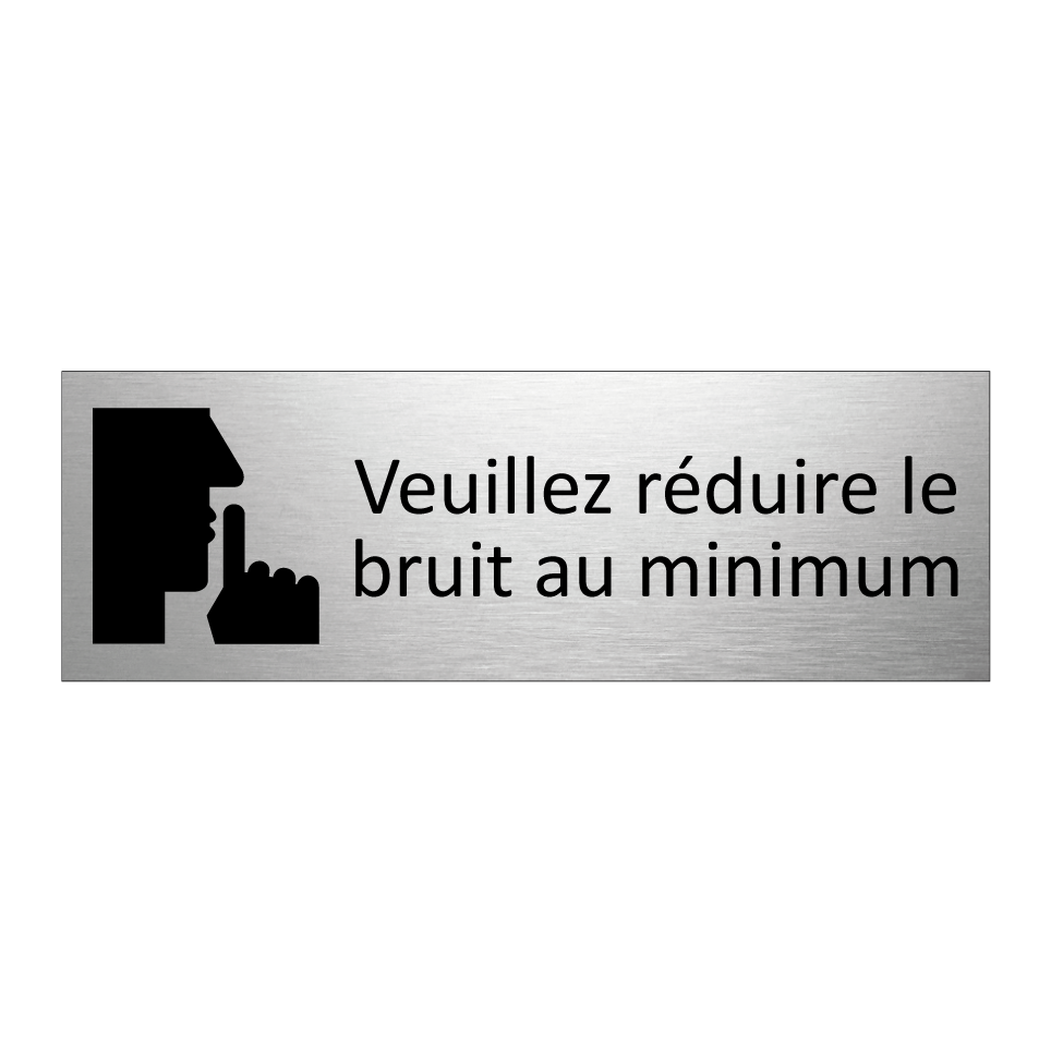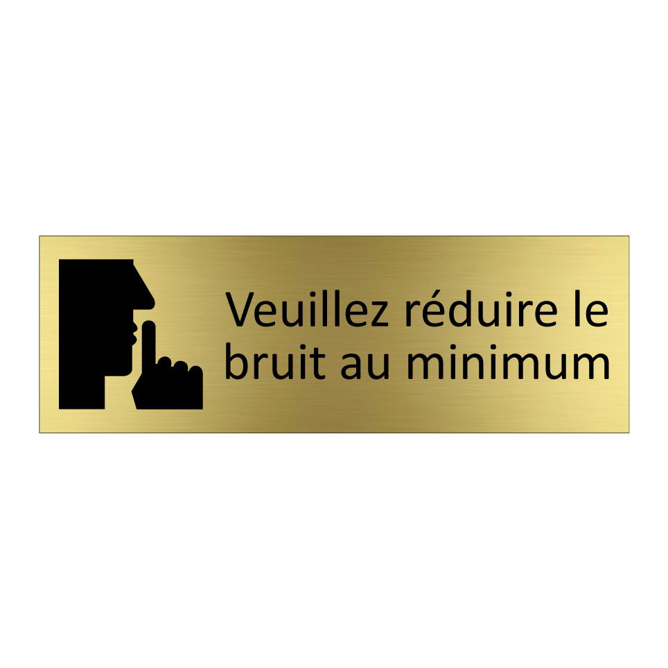 Panneau d'information avec le texte Veuillez réduire le bruit au minimum et une symbolique claire pour une meilleure visibilité.
