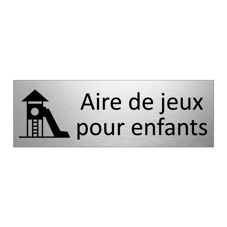 Panneau d'information avec le texte Aire de jeux pour enfants et une symbolique claire pour une meilleure visibilité.