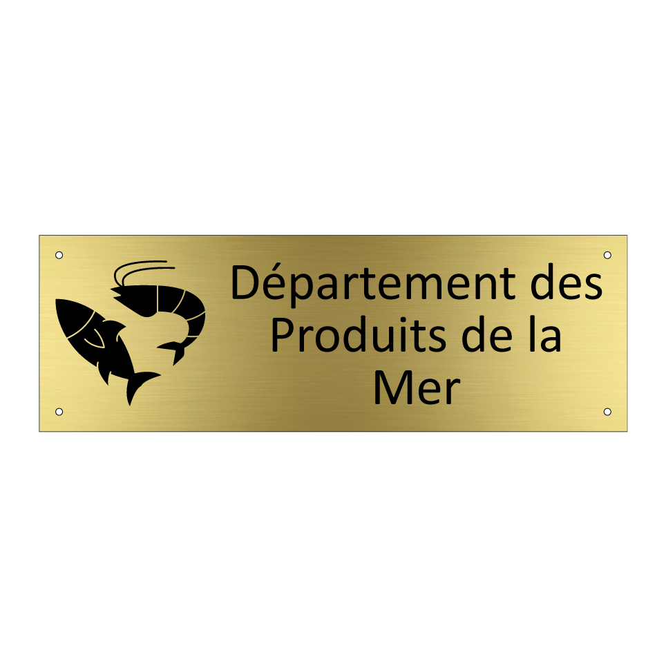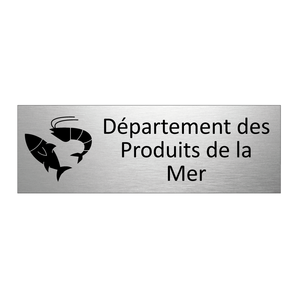 Panneau d'information avec le texte Département des Produits de la Mer et une symbolique claire pour une meilleure visibilité.