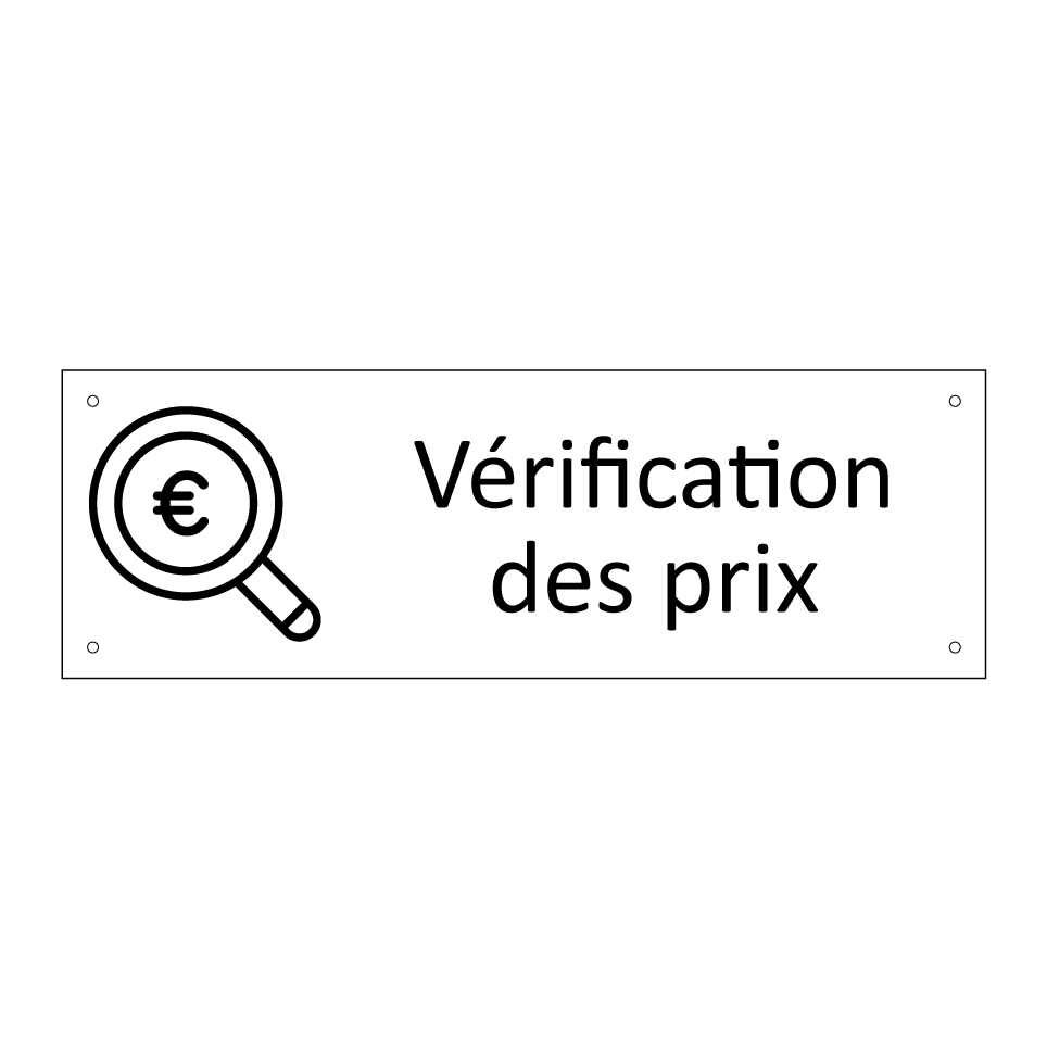 Panneau d'information avec le texte Vérification des prix et une symbolique claire pour une meilleure visibilité.