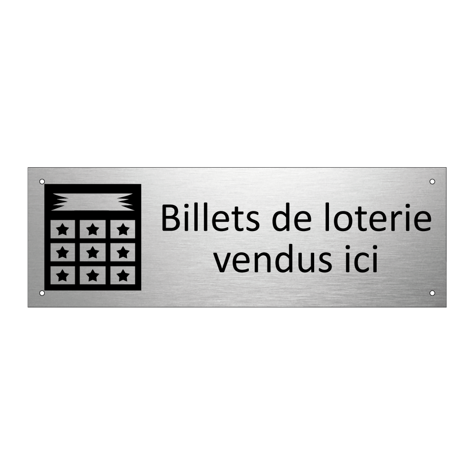 Panneau d'information avec le texte Billets de loterie vendus ici et une symbolique claire pour une meilleure visibilité.