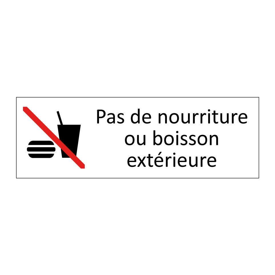 Panneau d'information avec le texte Pas de nourriture ou boisson extérieure et une symbolique claire pour une meilleure visibilité.