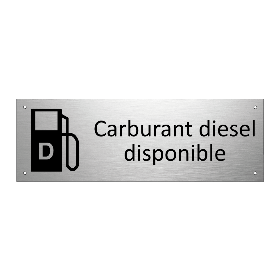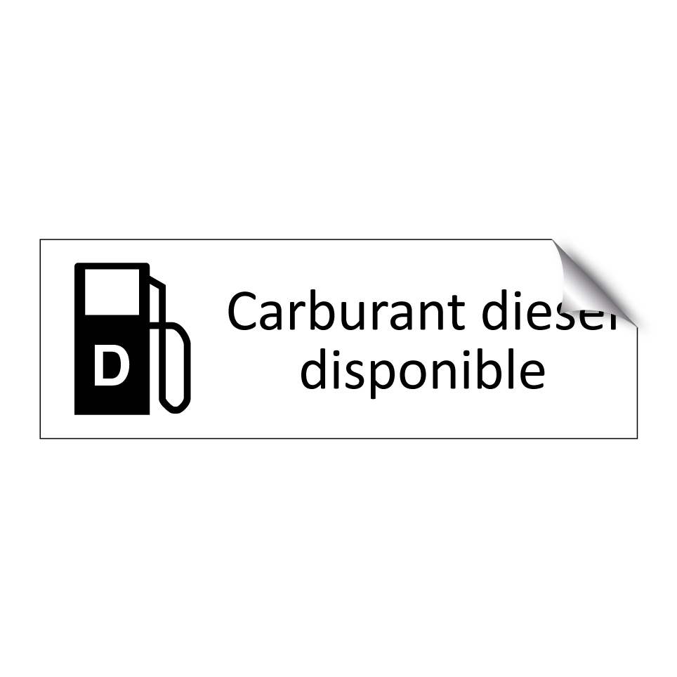 Panneau d'information avec le texte Carburant diesel disponible et une symbolique claire pour une meilleure visibilité.