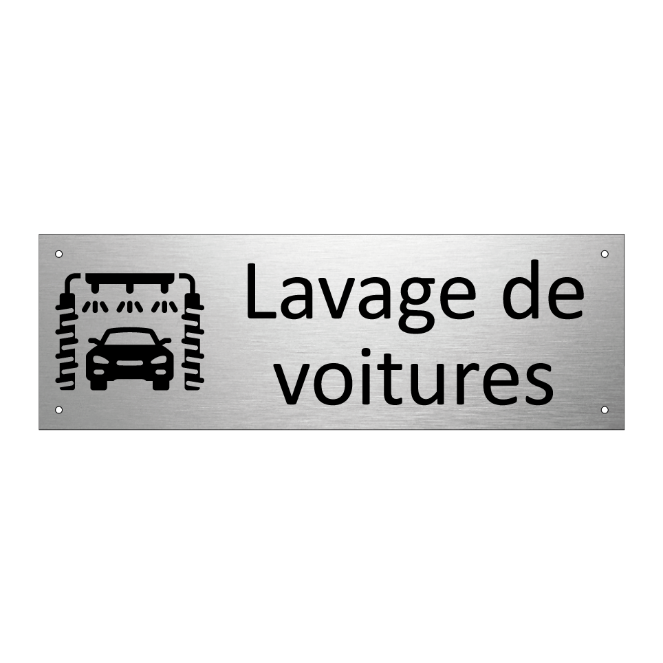 Panneau d'information avec le texte Lavage de voitures et une symbolique claire pour une meilleure visibilité.