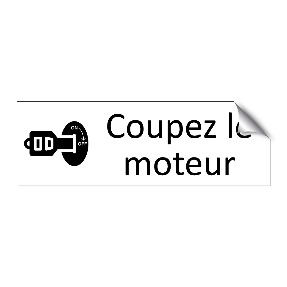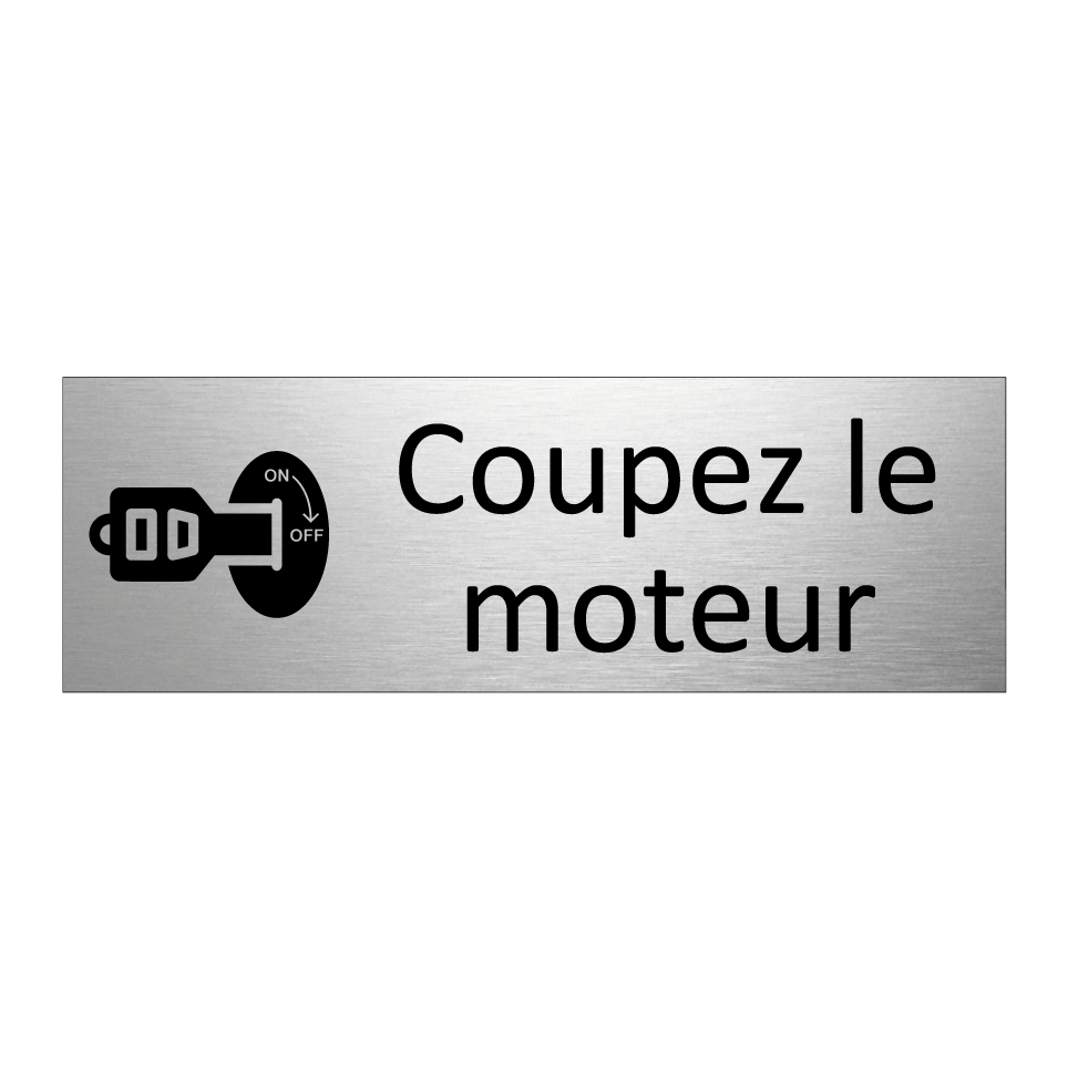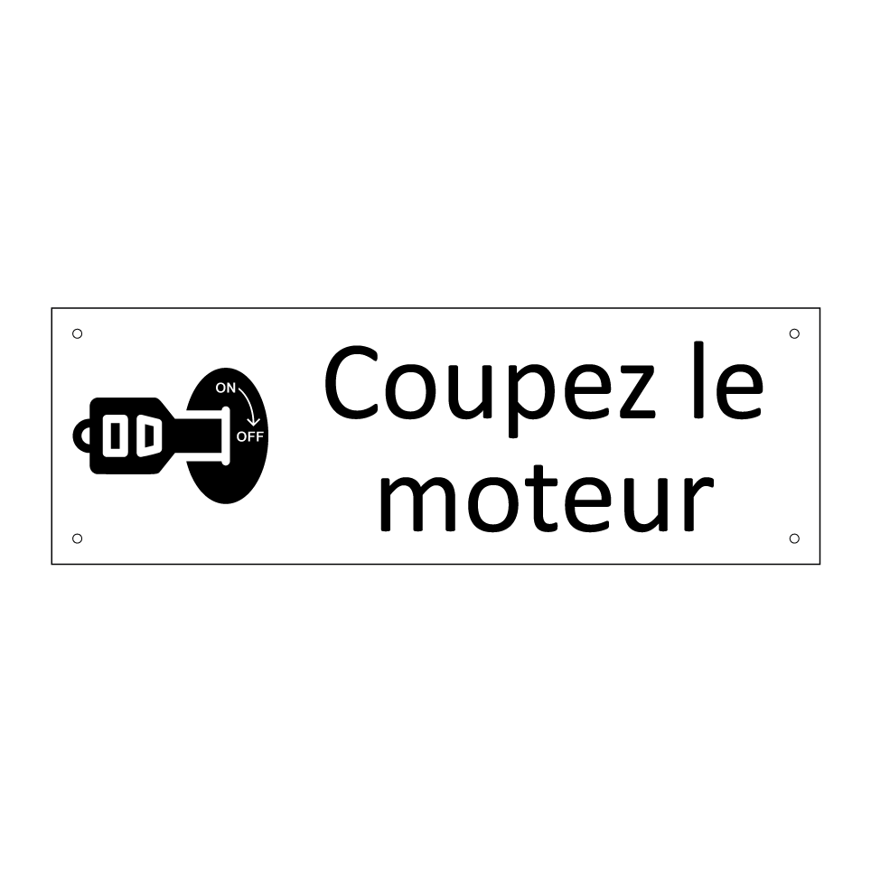 Panneau d'information avec le texte Coupez le moteur et une symbolique claire pour une meilleure visibilité.
