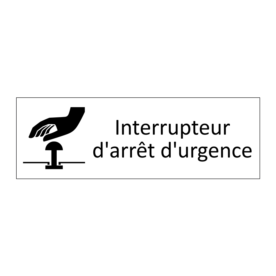 Panneau d'information avec le texte Interrupteur d'arrêt d'urgence et une symbolique claire pour une meilleure visibilité.