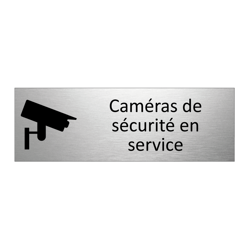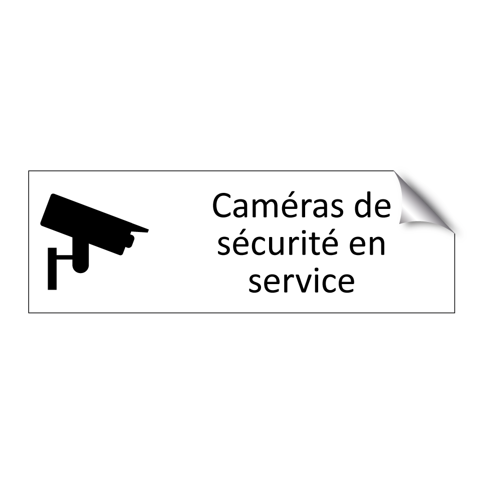 Panneau d'information avec le texte Caméras de sécurité en service et une symbolique claire pour une meilleure visibilité.