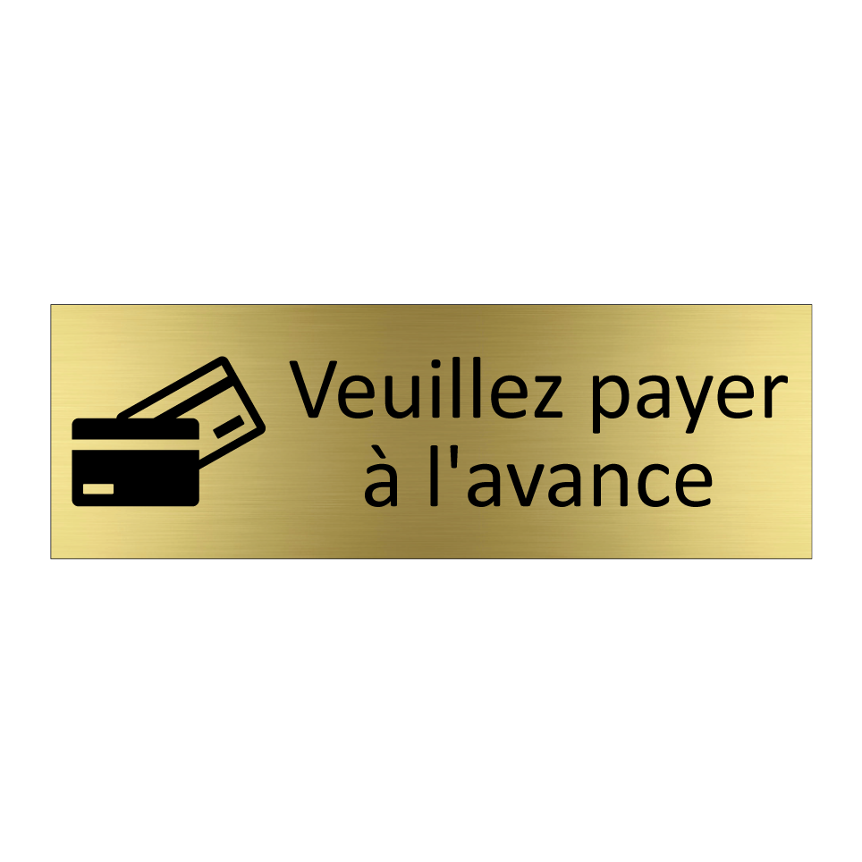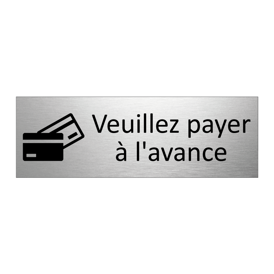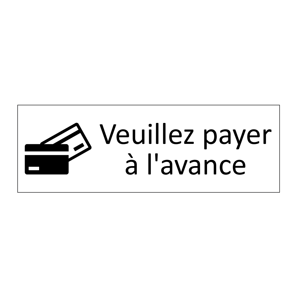 Panneau d'information avec le texte Veuillez payer à l'avance et une symbolique claire pour une meilleure visibilité.