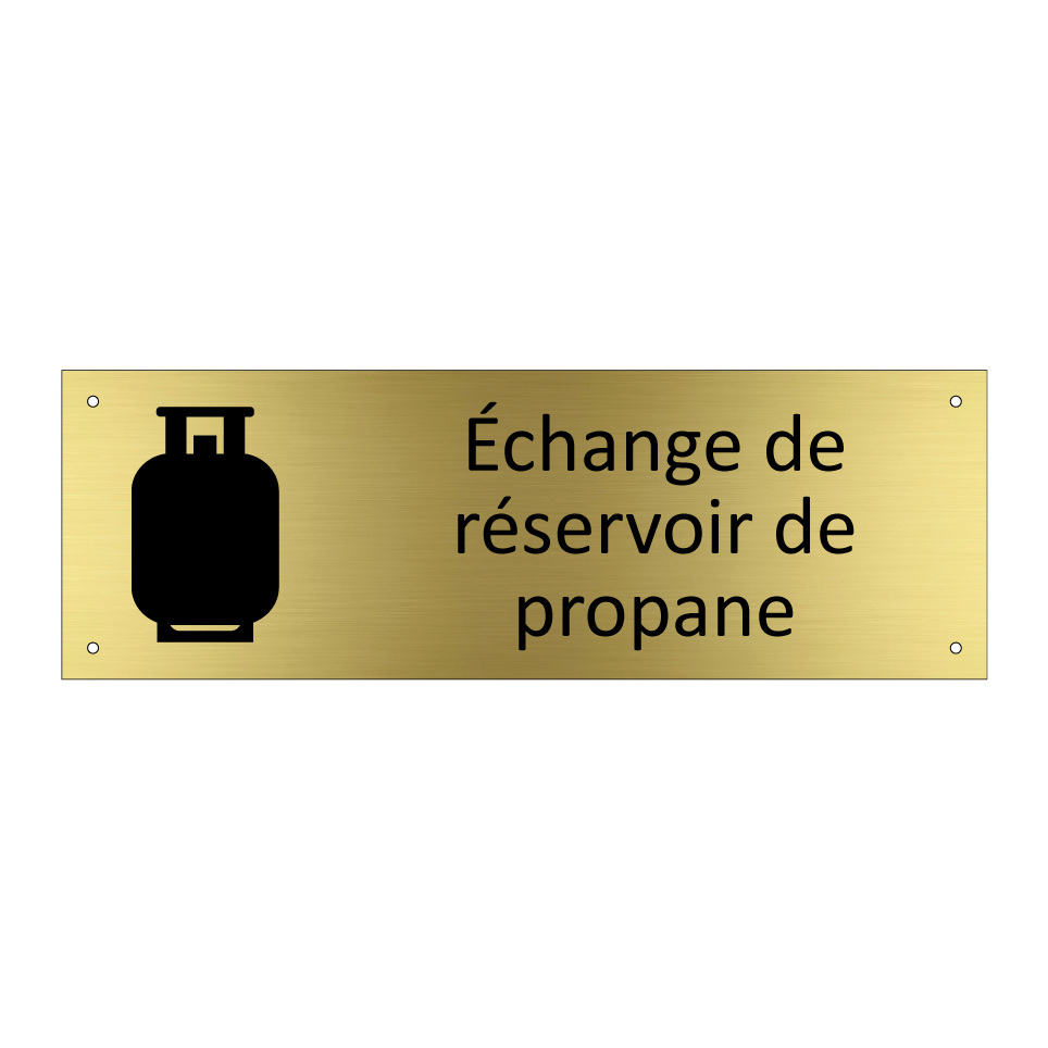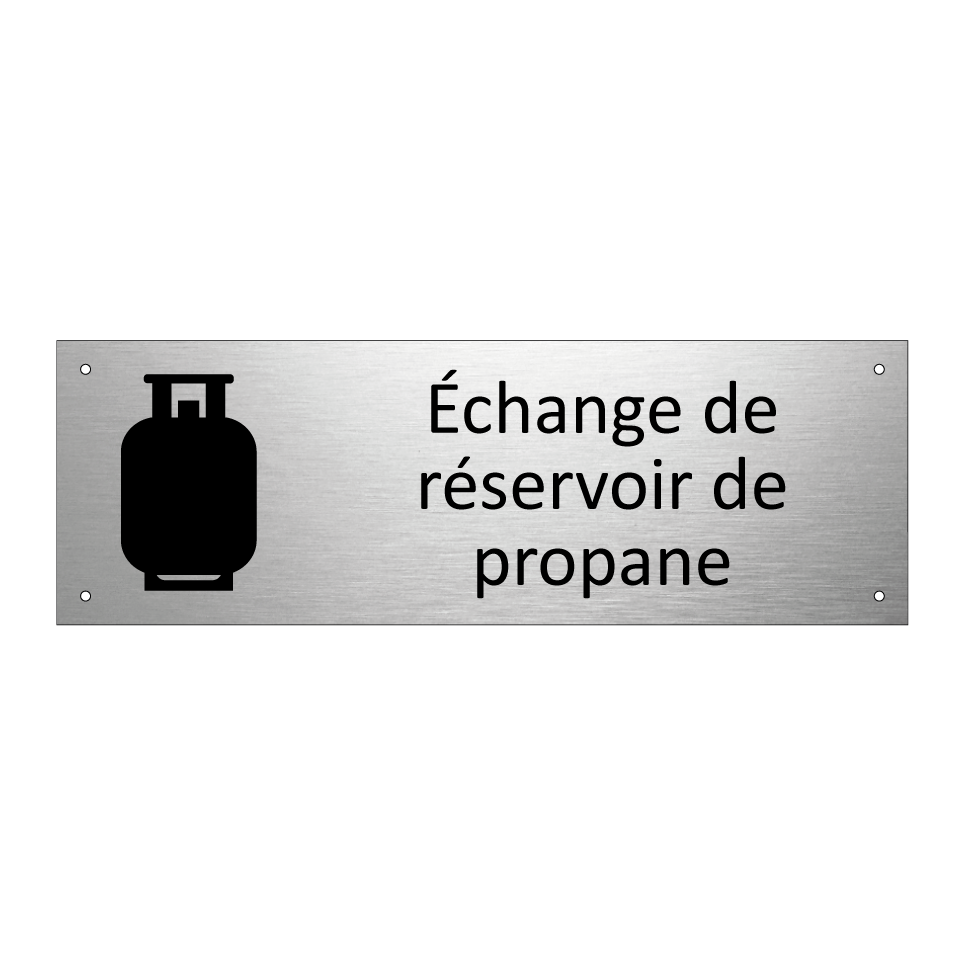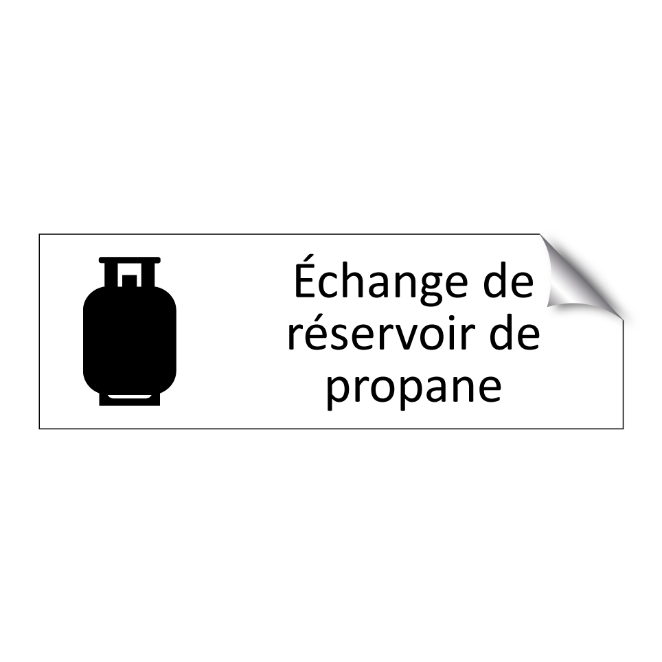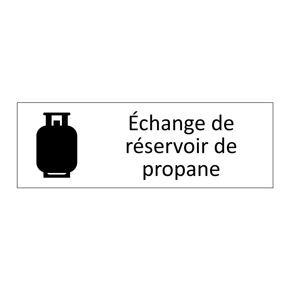 Panneau d'information avec le texte Échange de réservoir de propane et une symbolique claire pour une meilleure visibilité.