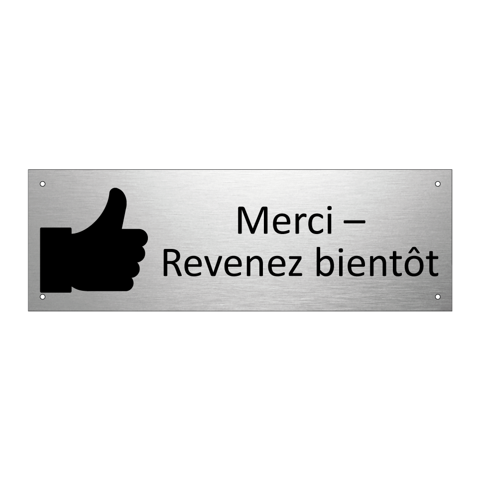 Panneau d'information avec le texte Merci – Revenez bientôt et une symbolique claire pour une meilleure visibilité.