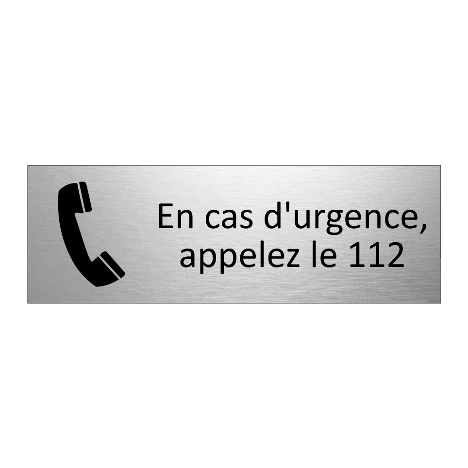 Panneau d'information avec le texte En cas d'urgence, appelez le 112 et une symbolique claire pour une meilleure visibilité.