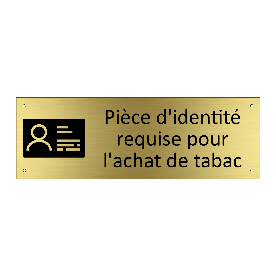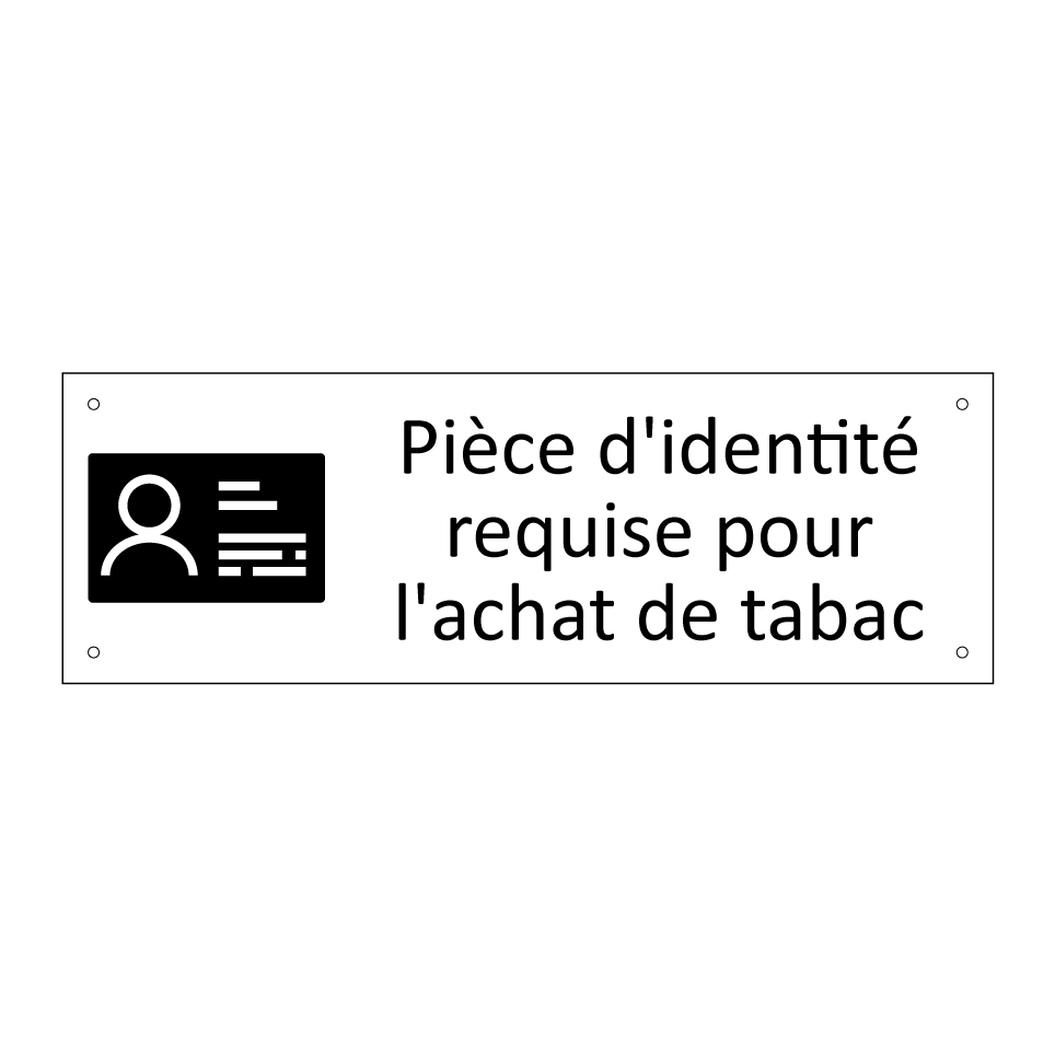 Panneau d'information avec le texte Pièce d'identité requise pour l'achat de tabac et une symbolique claire pour une meilleure visibilité.