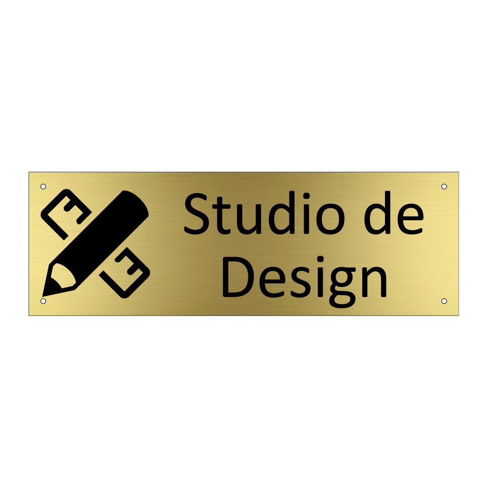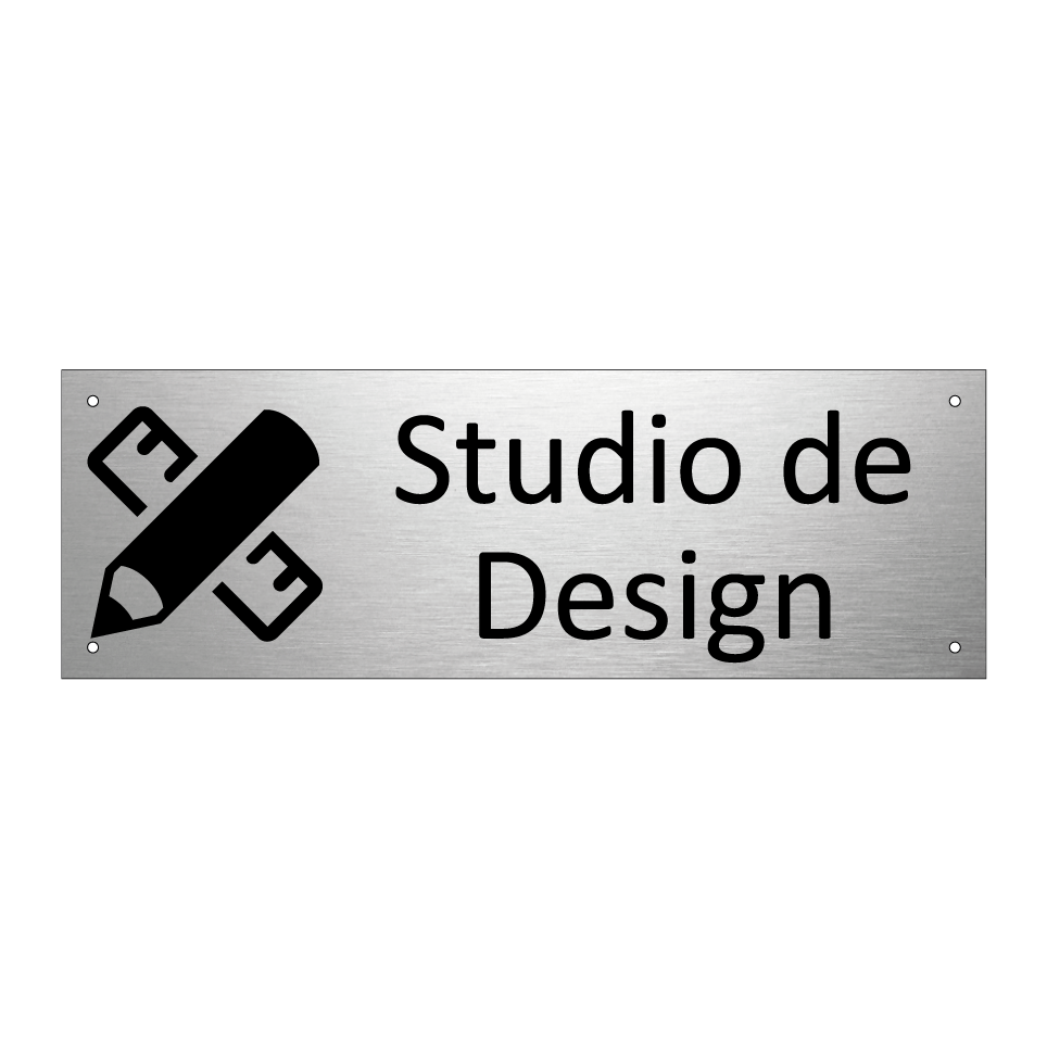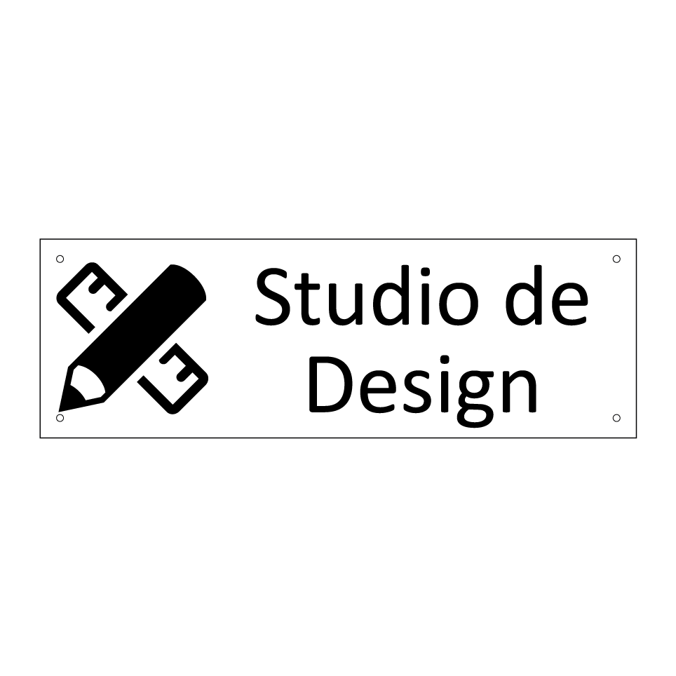 Panneau d'information avec le texte Studio de Design et une symbolique claire pour une meilleure visibilité.