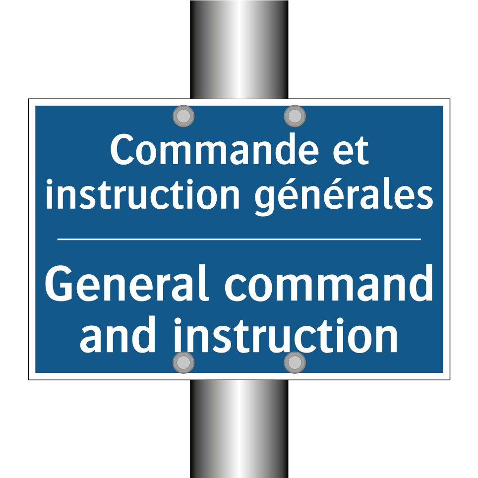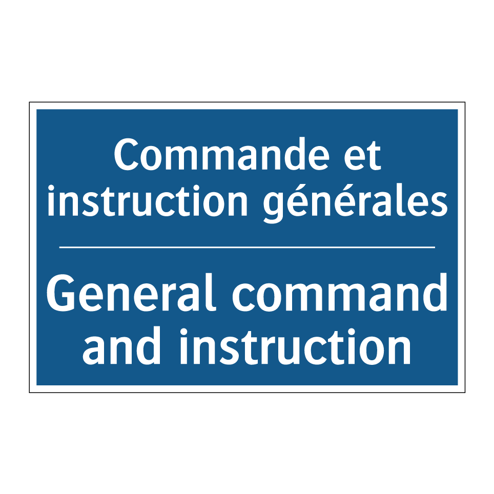 Panneau d'obligation bilingue avec texte en français : "Commande et instruction générales", et en anglais : "General command and instruction"