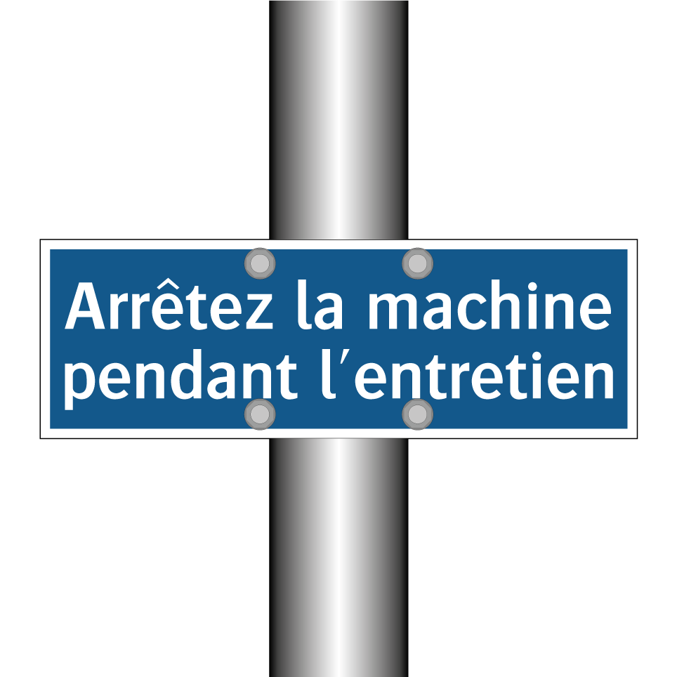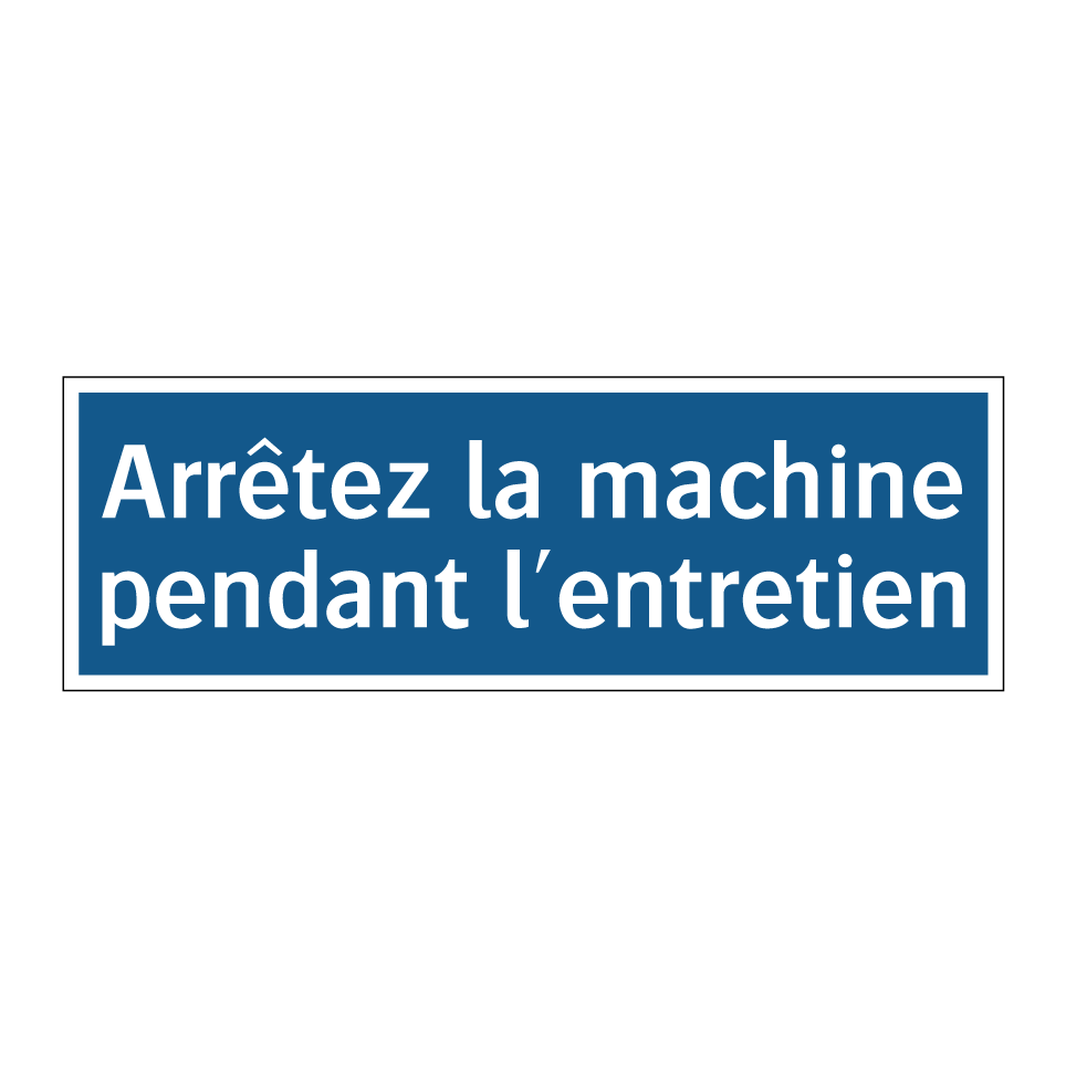Panneau d'obligation avec le texte : "Arrêtez la machine pendant l'entretien"