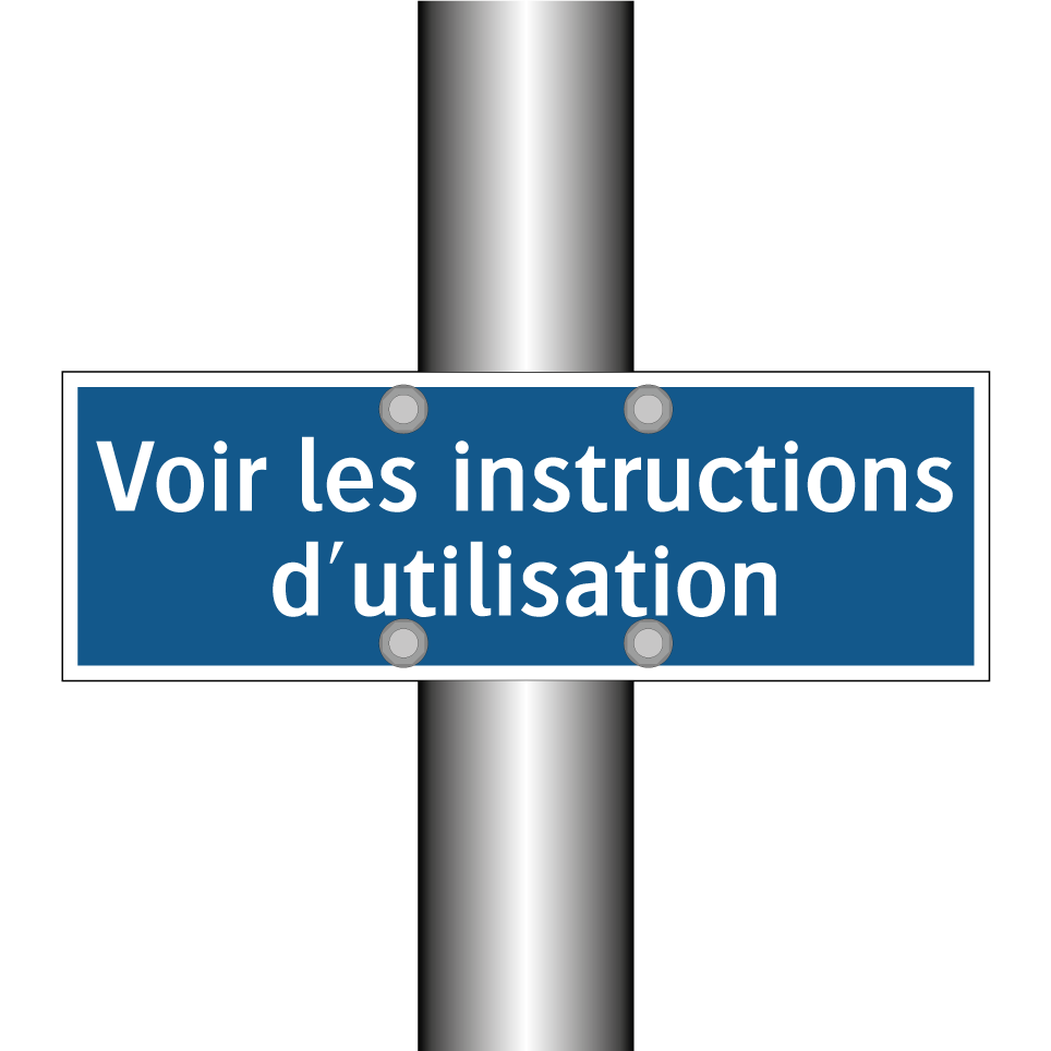 Panneau d'obligation avec le texte : "Voir les instructions d'utilisation"