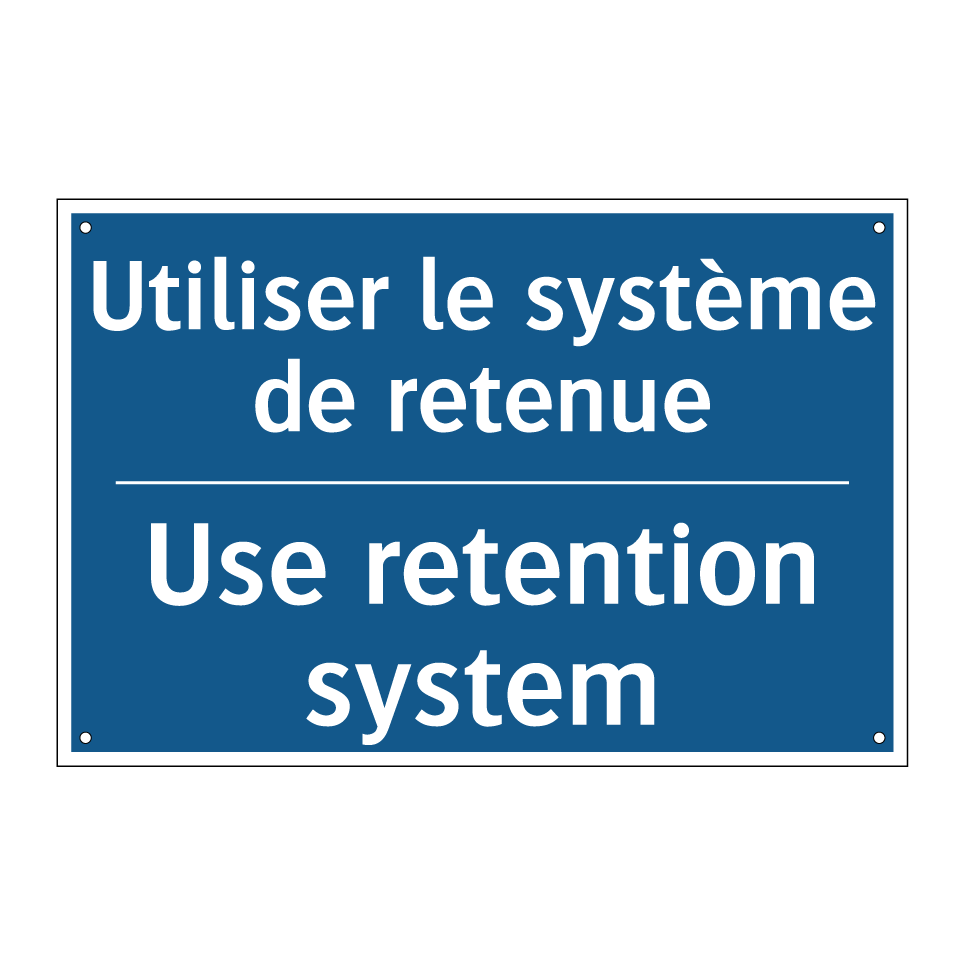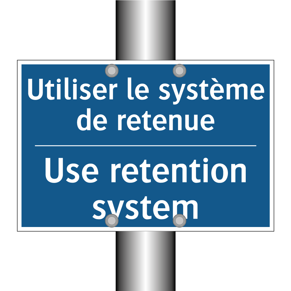 Panneau d'obligation bilingue avec texte en français : "Utiliser le système de retenue", et en anglais : "Use retention system"