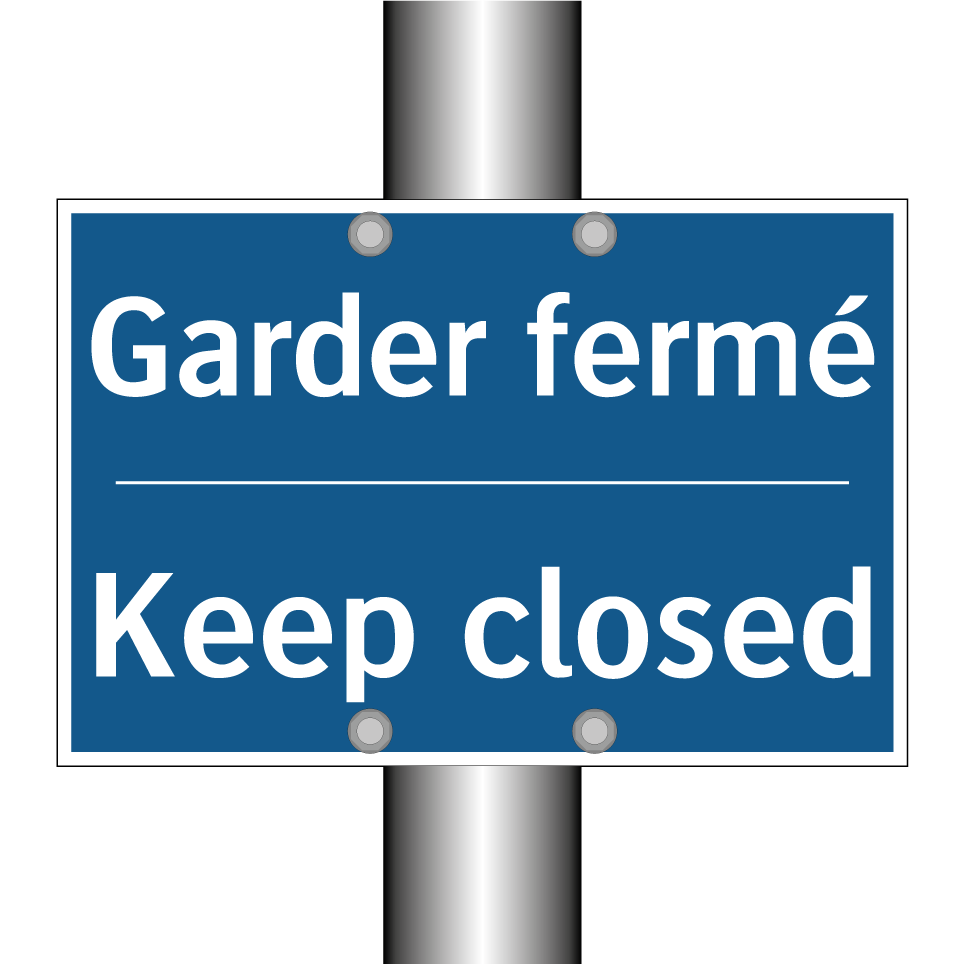 Panneau d'obligation bilingue avec texte en français : "Garder fermé", et en anglais : "Keep closed"