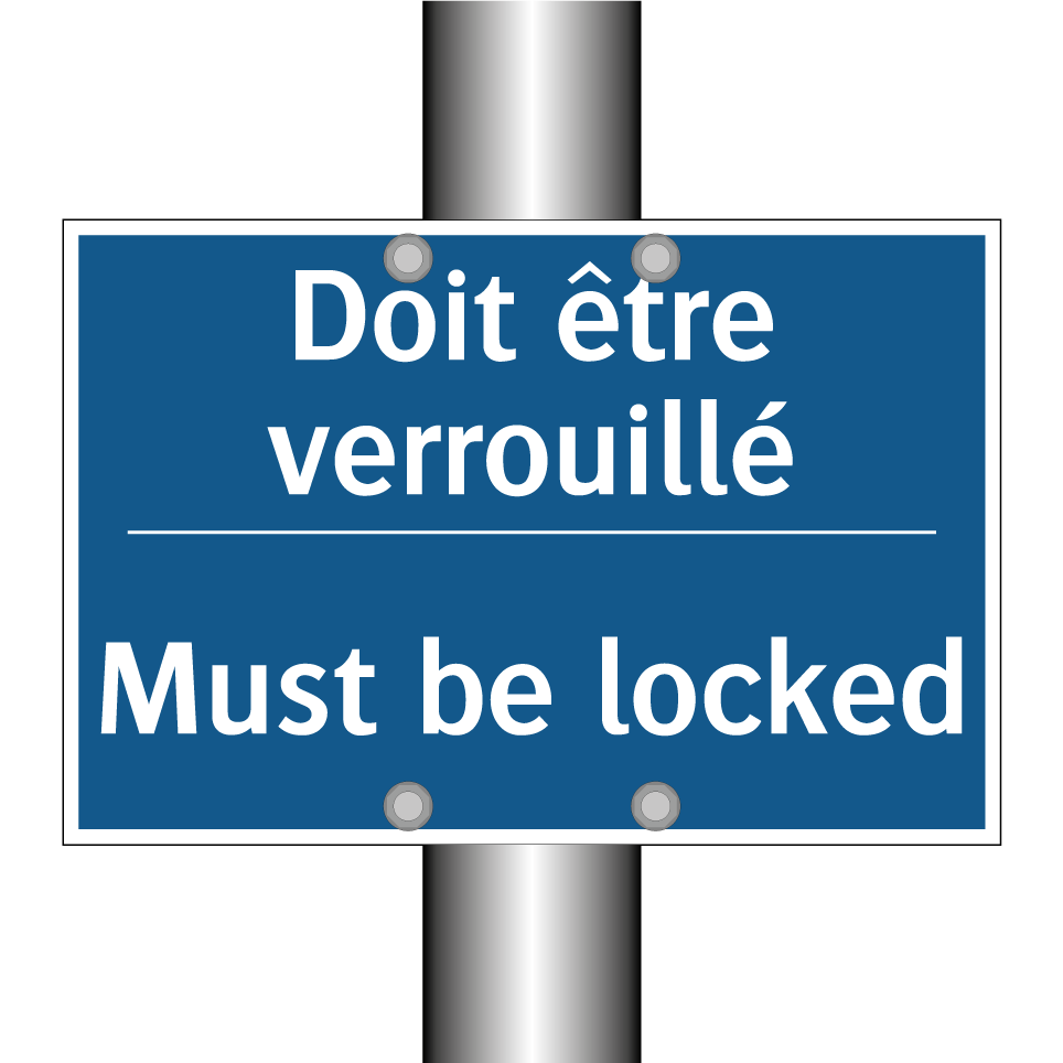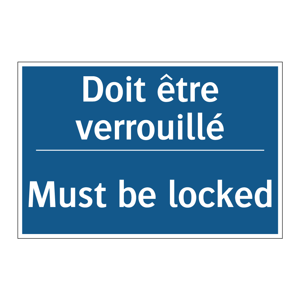 Panneau d'obligation bilingue avec texte en français : "Doit être verrouillé", et en anglais : "Must be locked"