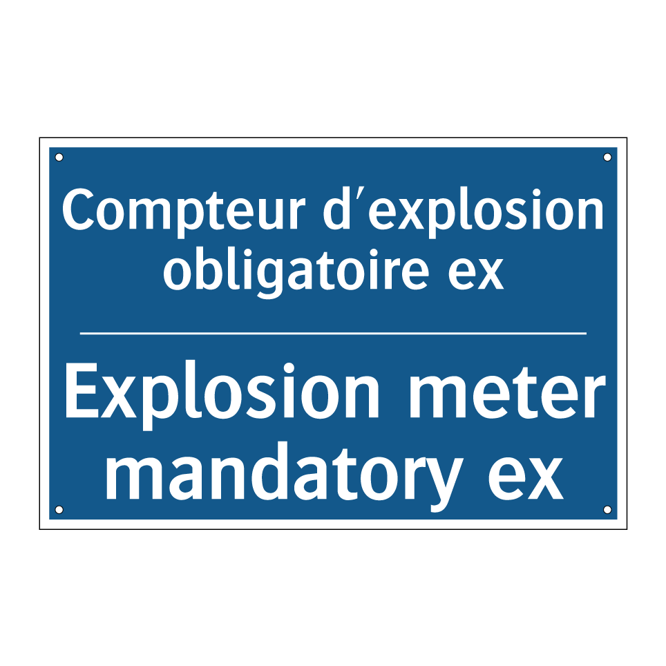 Panneau d'obligation bilingue avec texte en français : "Compteur d'explosion obligatoire ex", et en anglais : "Explosion meter mandatory ex"