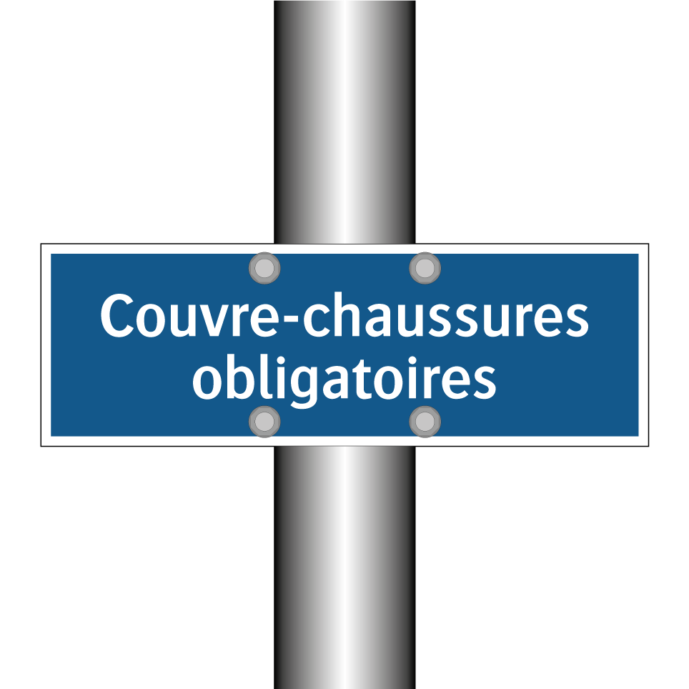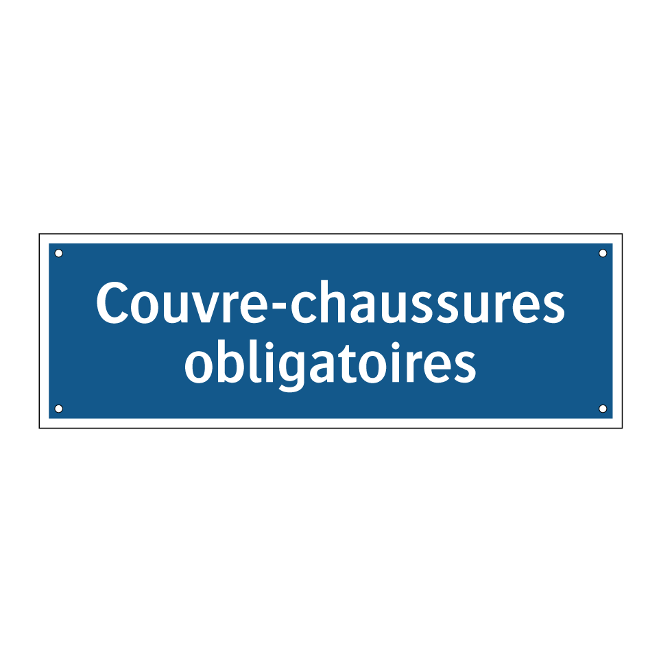 Panneau d'obligation avec le texte : "Couvre-chaussures obligatoires"