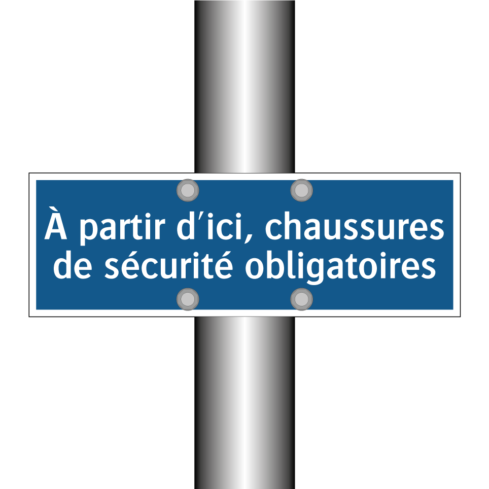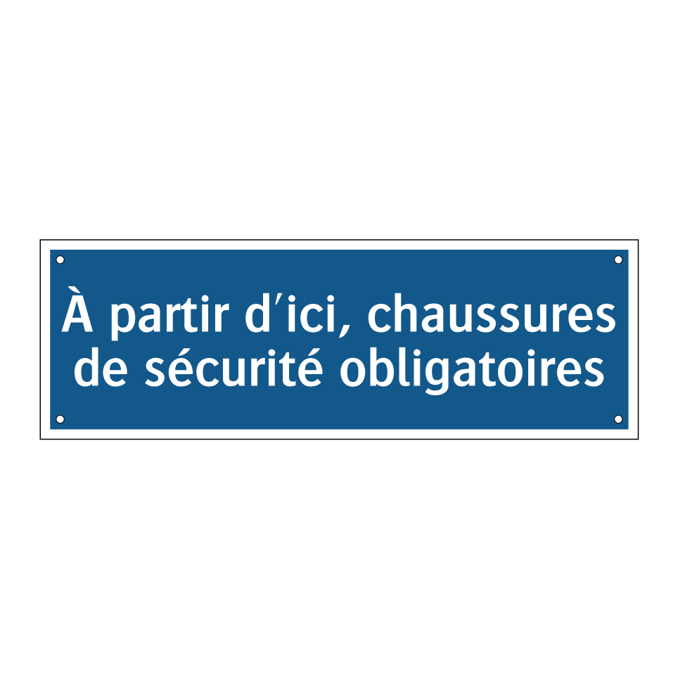 Panneau d'obligation avec le texte : "À partir d'ici, chaussures de sécurité obligatoires"