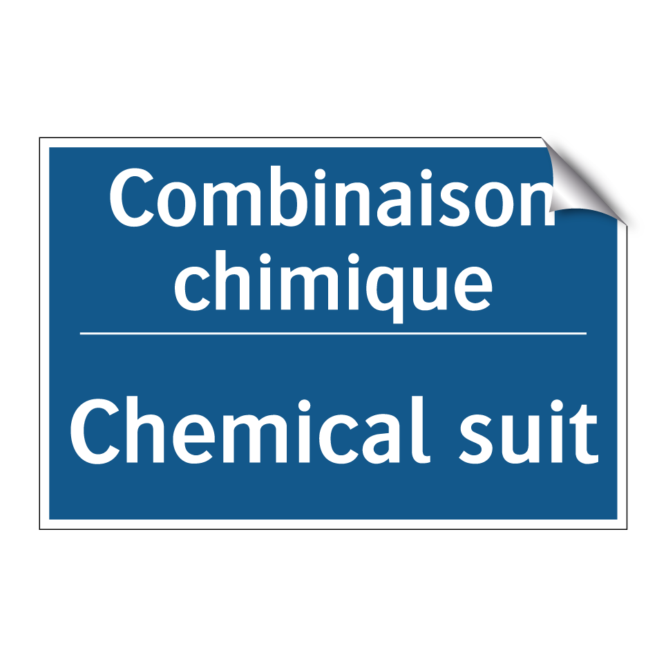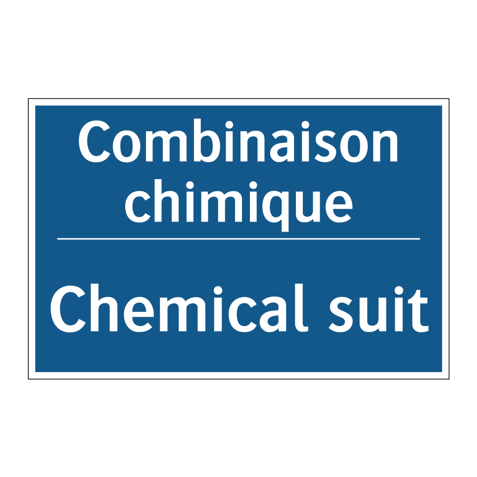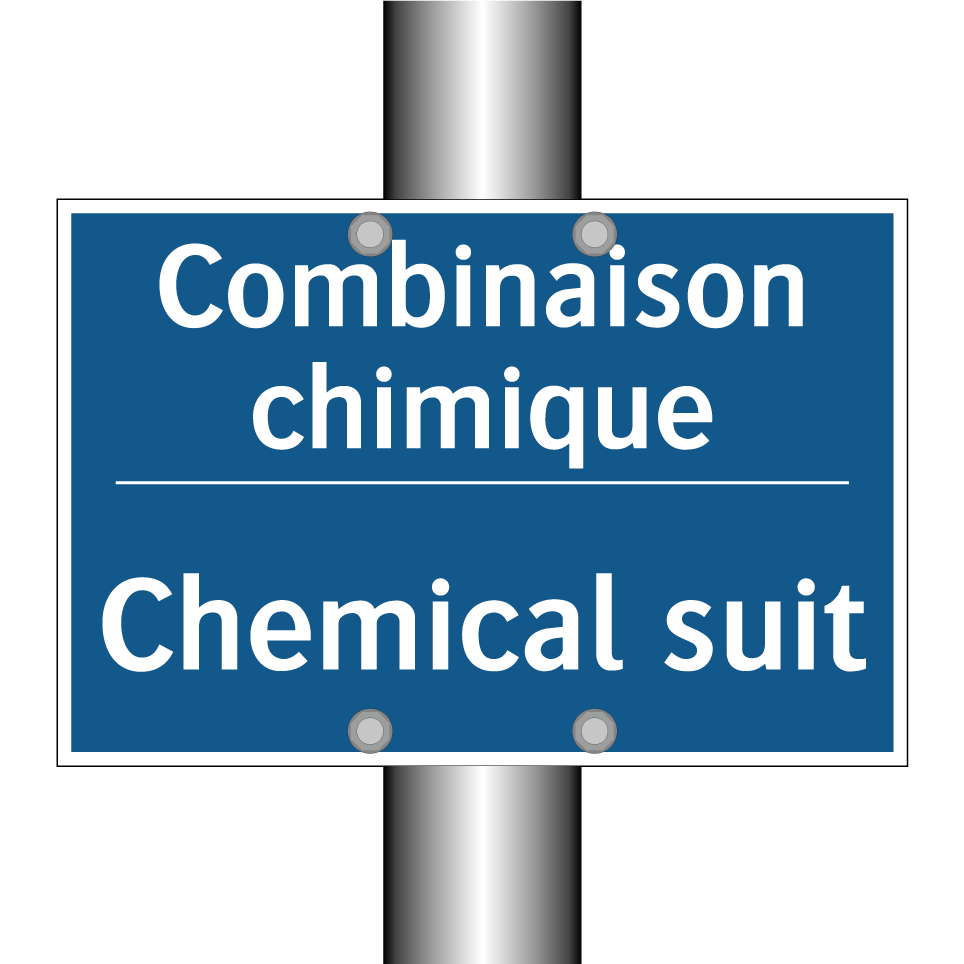 Panneau d'obligation bilingue avec texte en français : "Combinaison chimique", et en anglais : "Chemical suit"