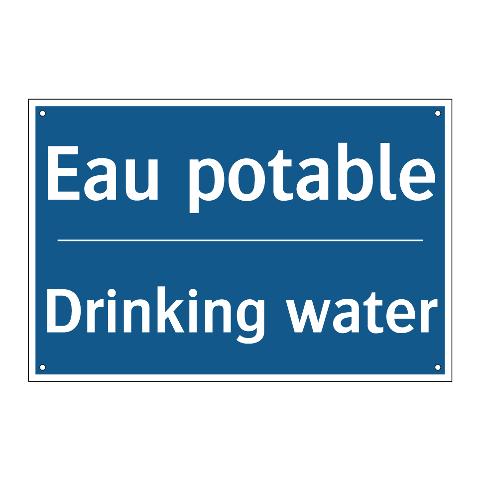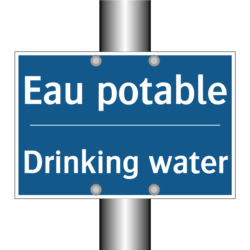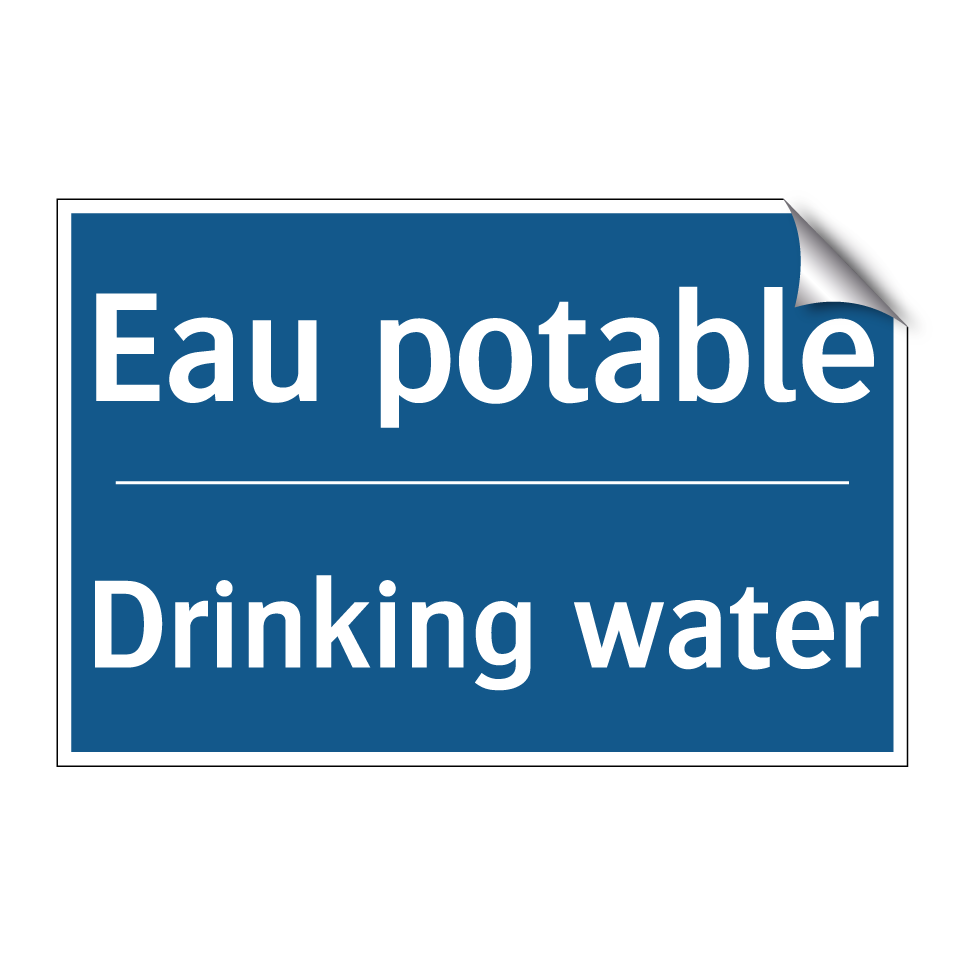 Panneau d'obligation bilingue avec texte en français : "Eau potable", et en anglais : "Drinking water"