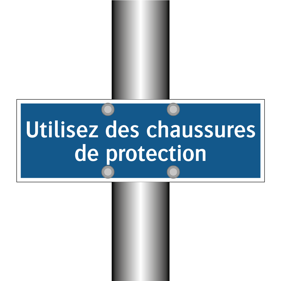 Panneau d'obligation avec le texte : "Utilisez des chaussures de protection"