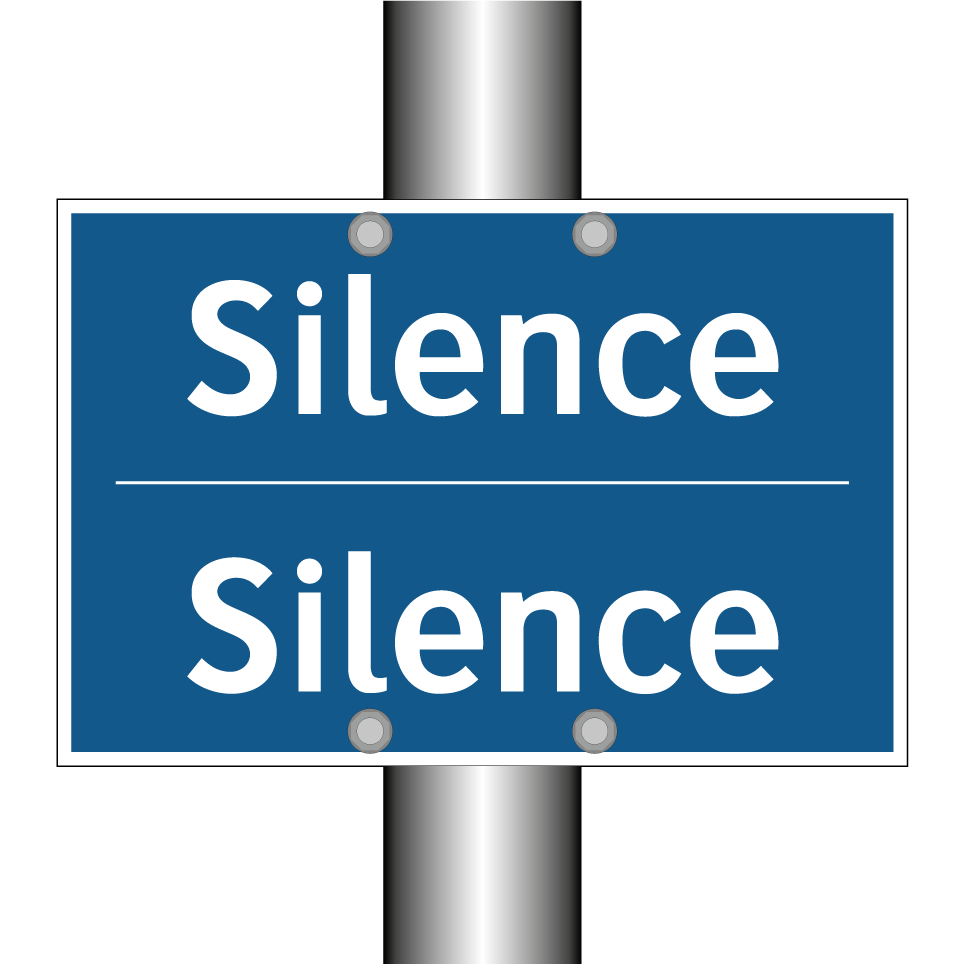 Panneau d'obligation bilingue avec texte en français : "Silence", et en anglais : "Silence"