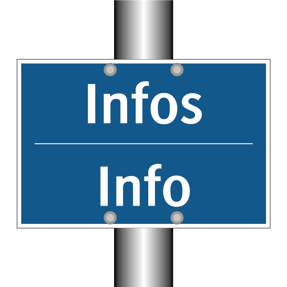 Panneau d'obligation bilingue avec texte en français : "Infos", et en anglais : "Info"