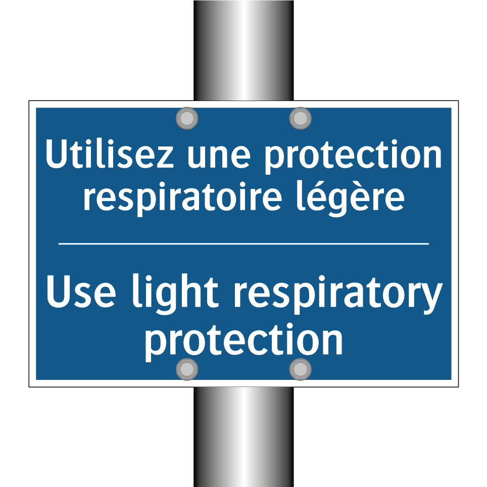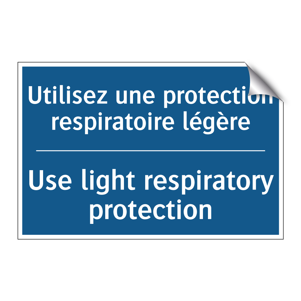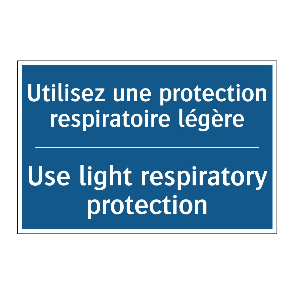 Panneau d'obligation bilingue avec texte en français : "Utilisez une protection respiratoire légère", et en anglais : "Use light respiratory protection"