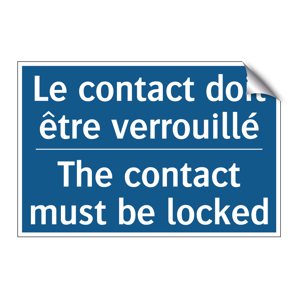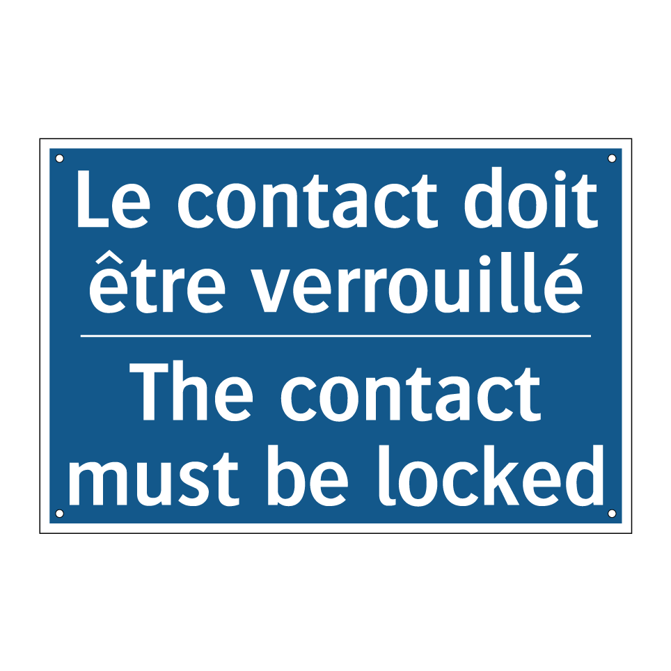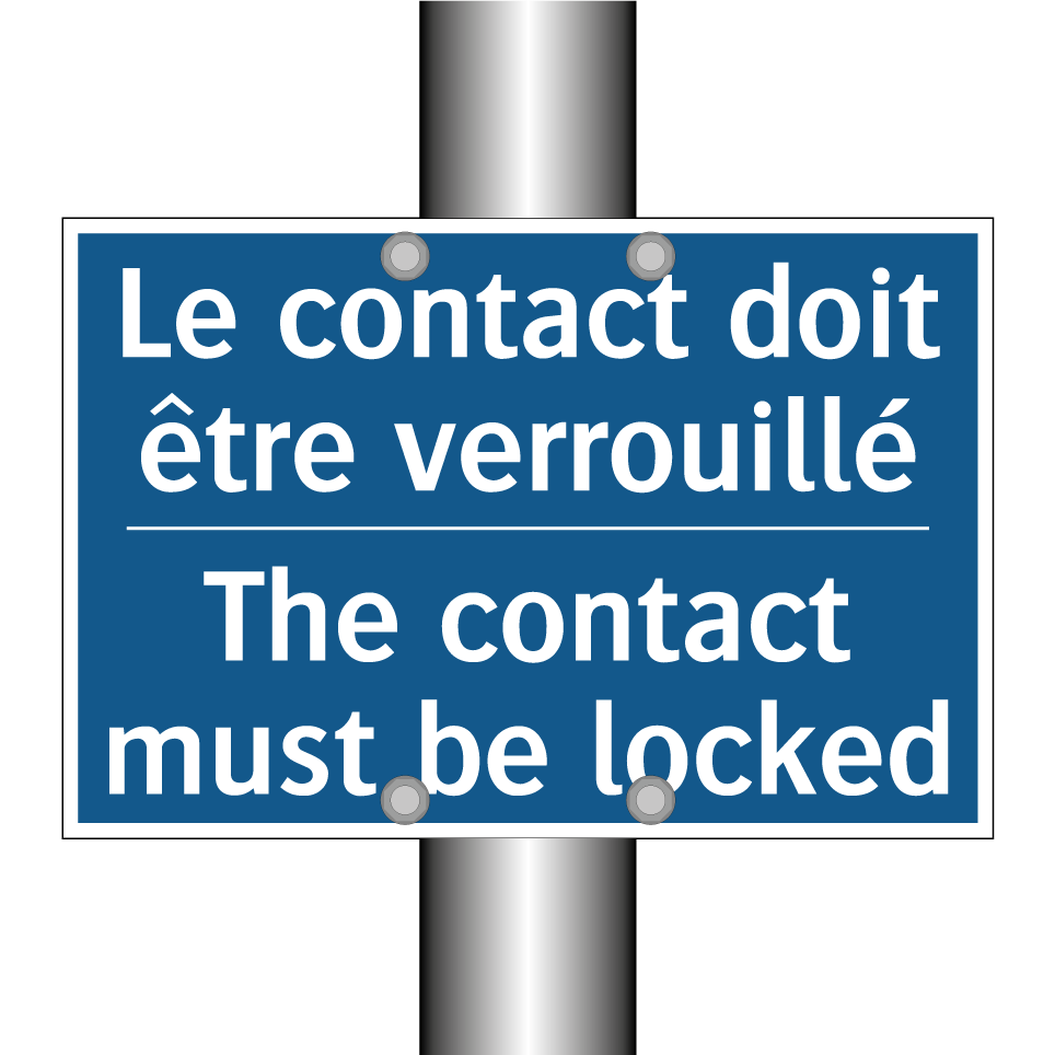 Panneau d'obligation bilingue avec texte en français : "Le contact doit être verrouillé", et en anglais : "The contact must be locked"
