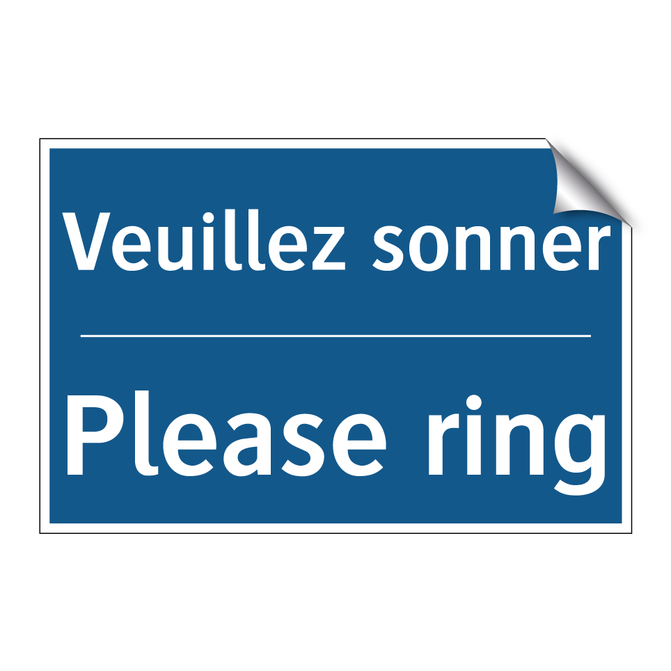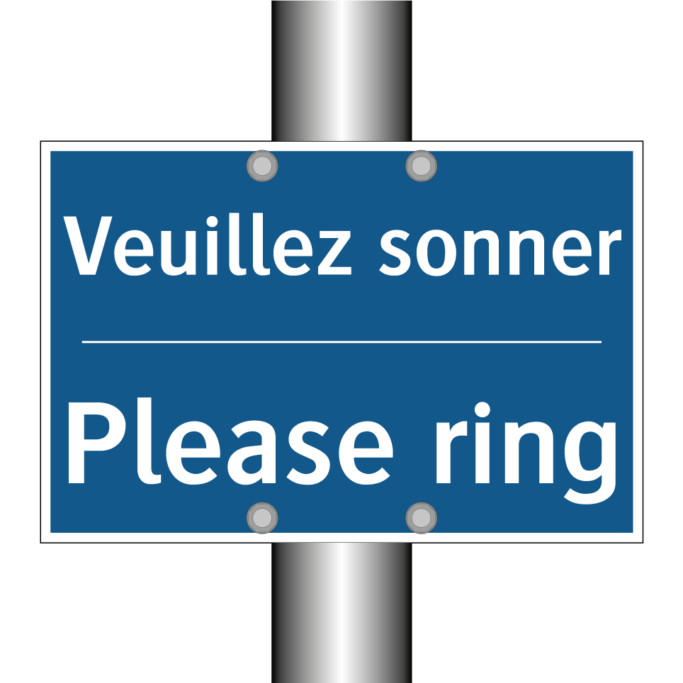 Panneau d'obligation bilingue avec texte en français : "Veuillez sonner", et en anglais : "Please ring"