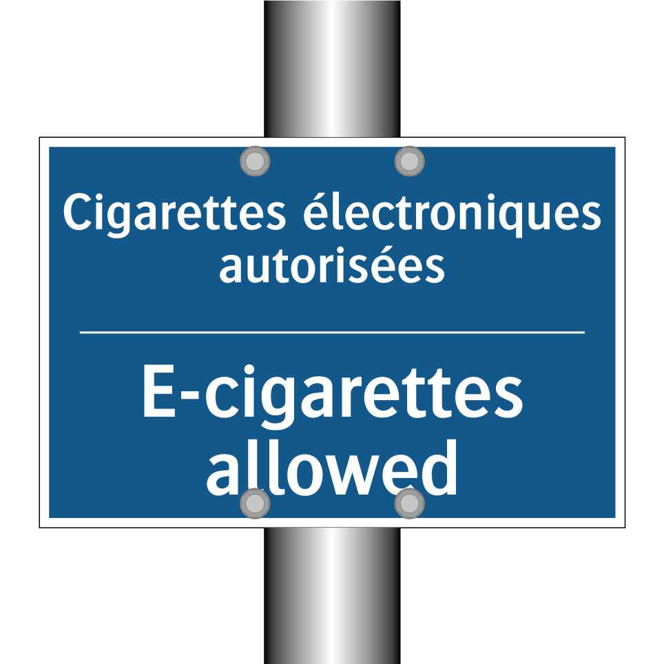 Panneau d'obligation bilingue avec texte en français : "Cigarettes électroniques autorisées", et en anglais : "E-cigarettes allowed"