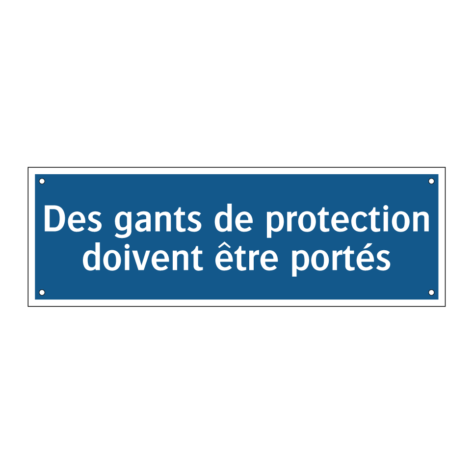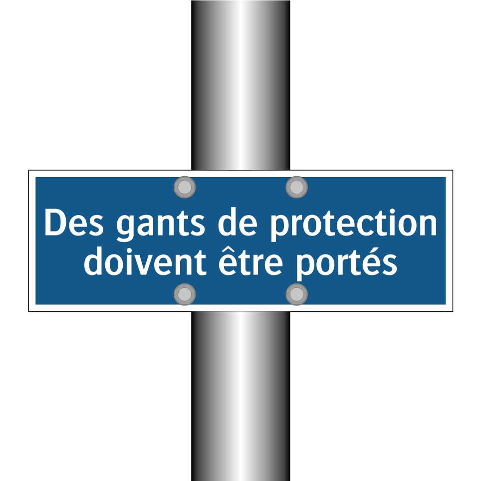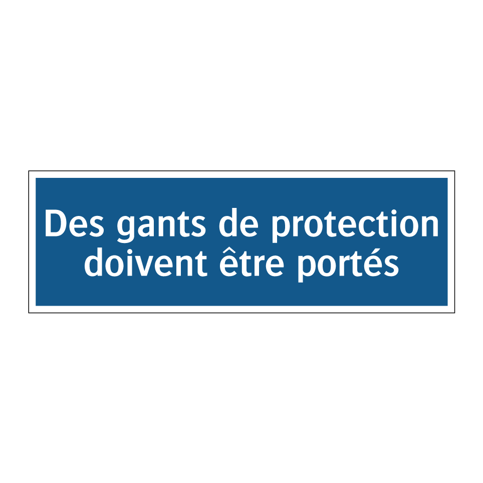 Panneau d'obligation avec le texte : "Des gants de protection doivent être portés"