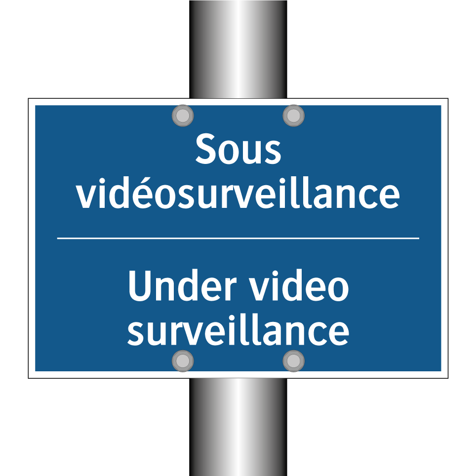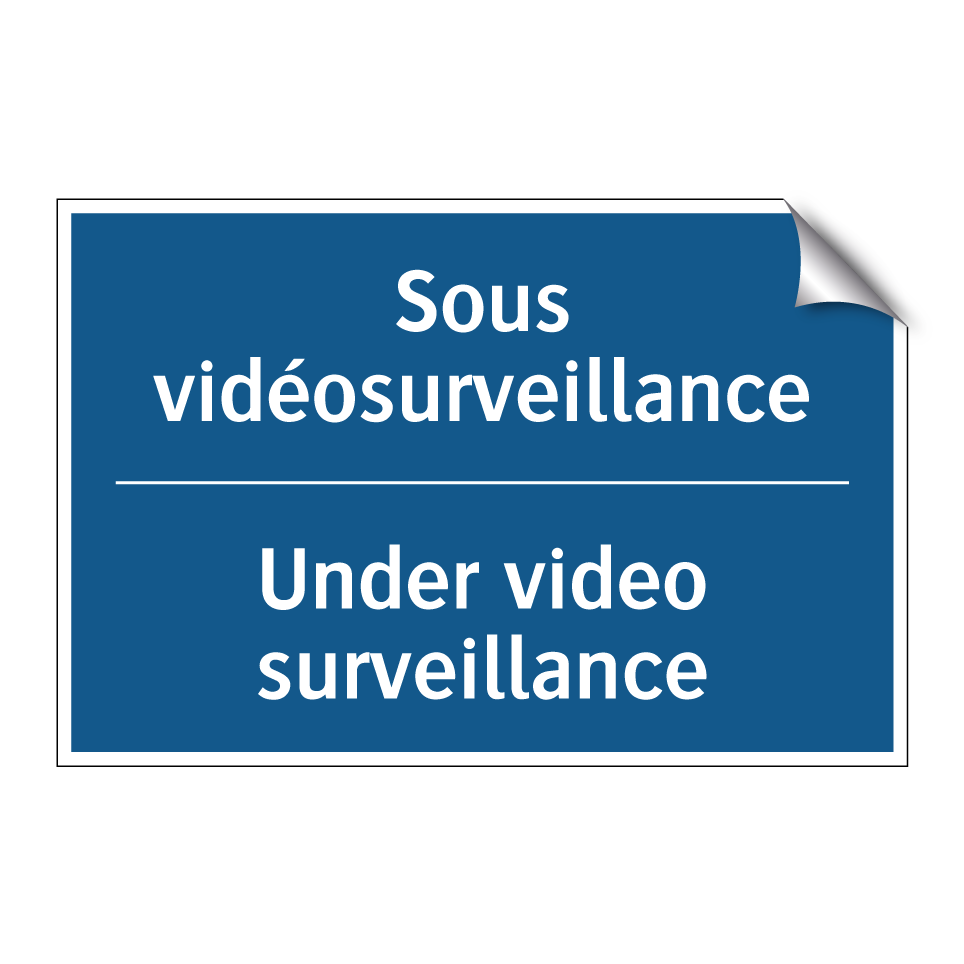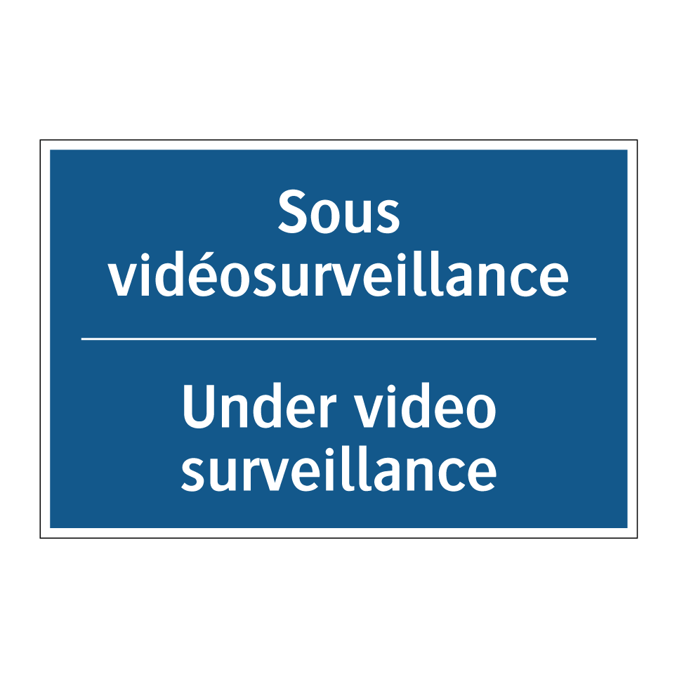 Panneau d'obligation bilingue avec texte en français : "Sous vidéosurveillance", et en anglais : "Under video surveillance"