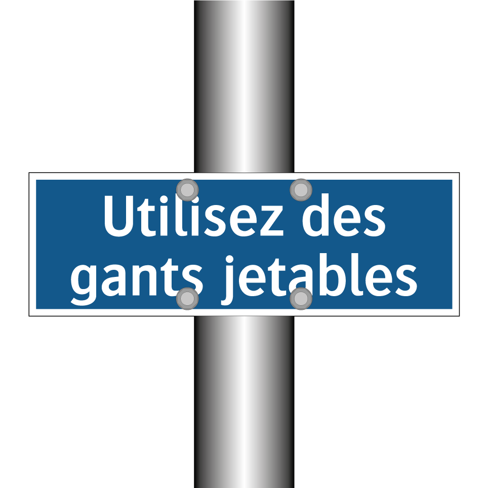 Panneau d'obligation avec le texte : "Utilisez des gants jetables"