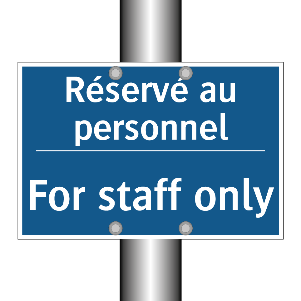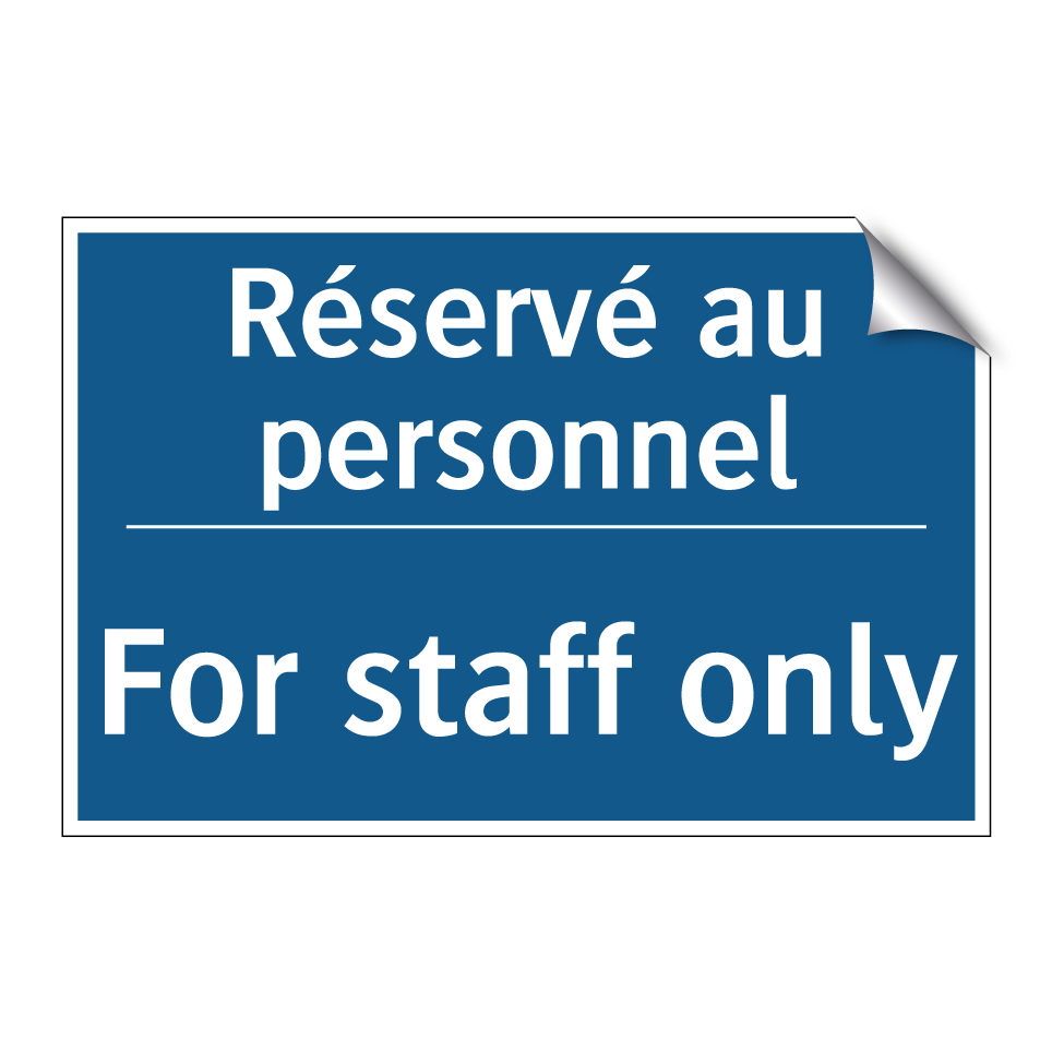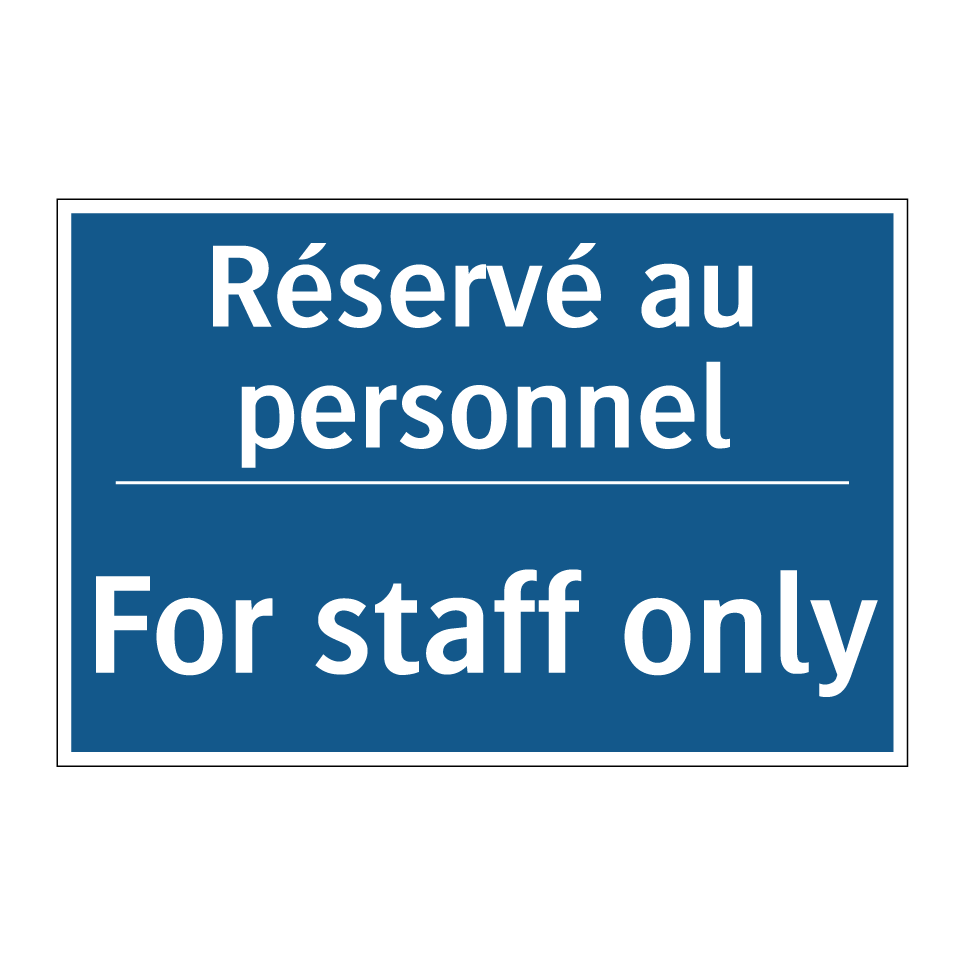 Panneau d'obligation bilingue avec texte en français : "Réservé au personnel", et en anglais : "For staff only"